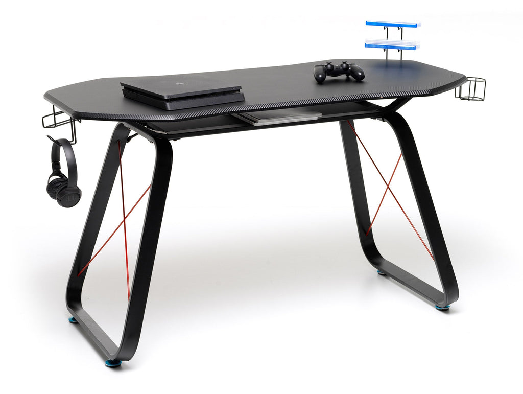 Scrivania Gaming 145x65x89 cm con Accessori Portaoggetti in Legno Nero