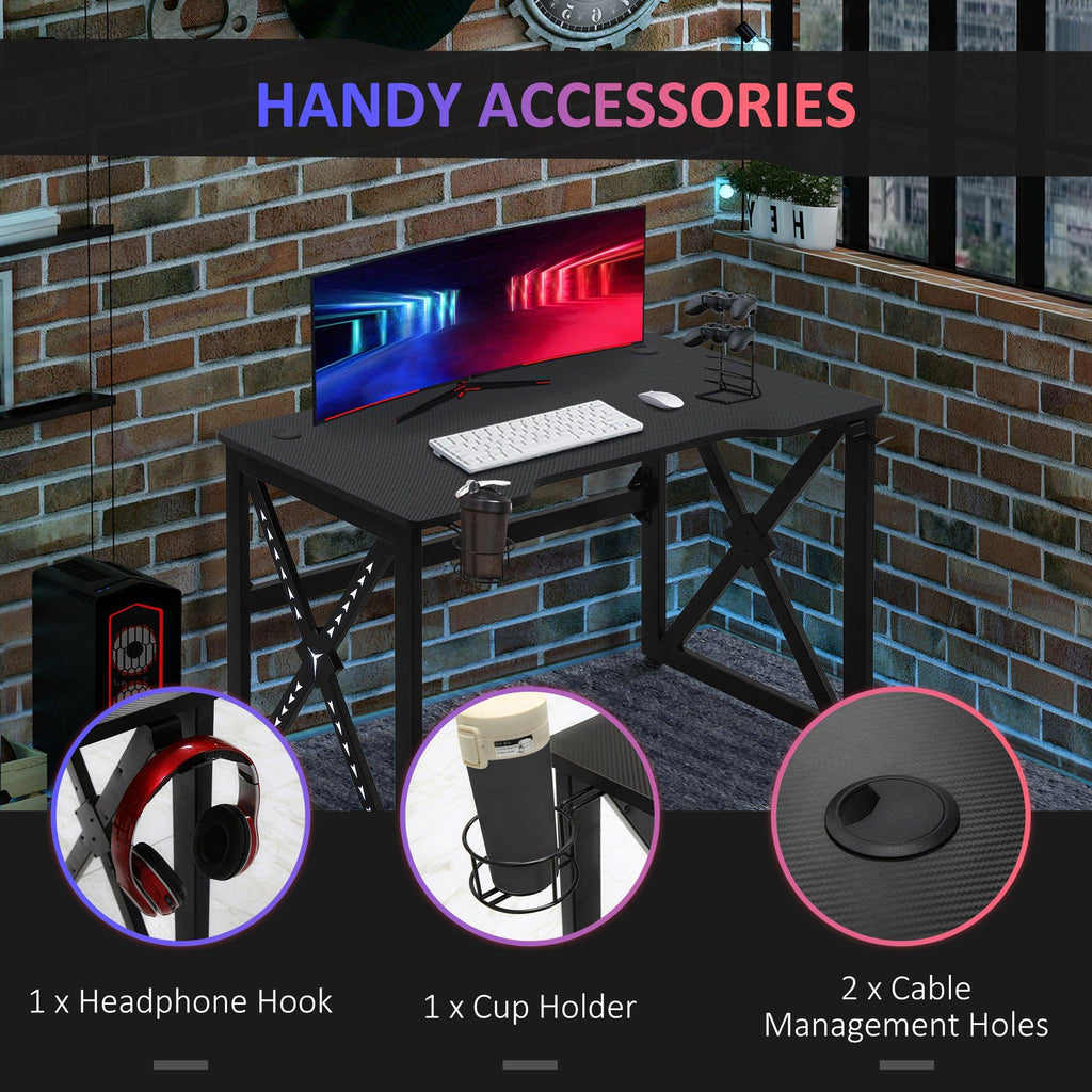 Scrivania Gaming con Luci LED 120x60x73 cm in MDF e Metallo Nero