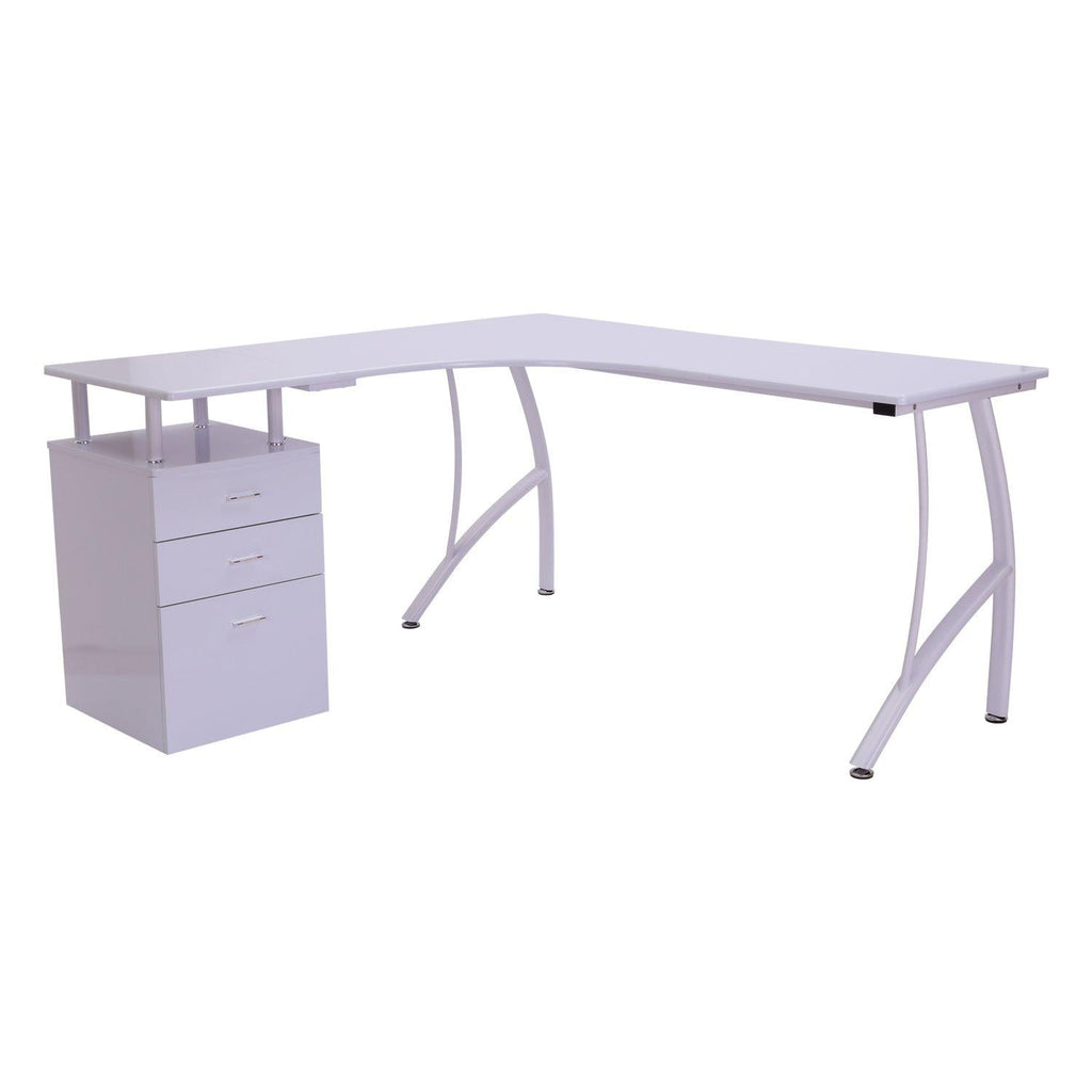 Scrivania Moderna ad Angolo con Cassetti in Legno Bianco 152x144x76 cm