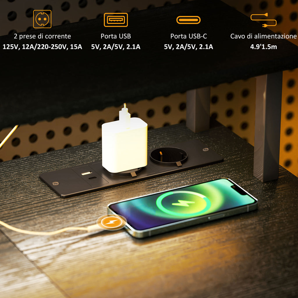 • STAZIONE DI RICARICA INTEGRATA: La scrivania per camera garantisce l'alimentazione continua di tutti i tuoi dispositivi grazie a due prese di corrente, una porta USB e una presa USB-C, elegantemente integrati nel piano di lavoro