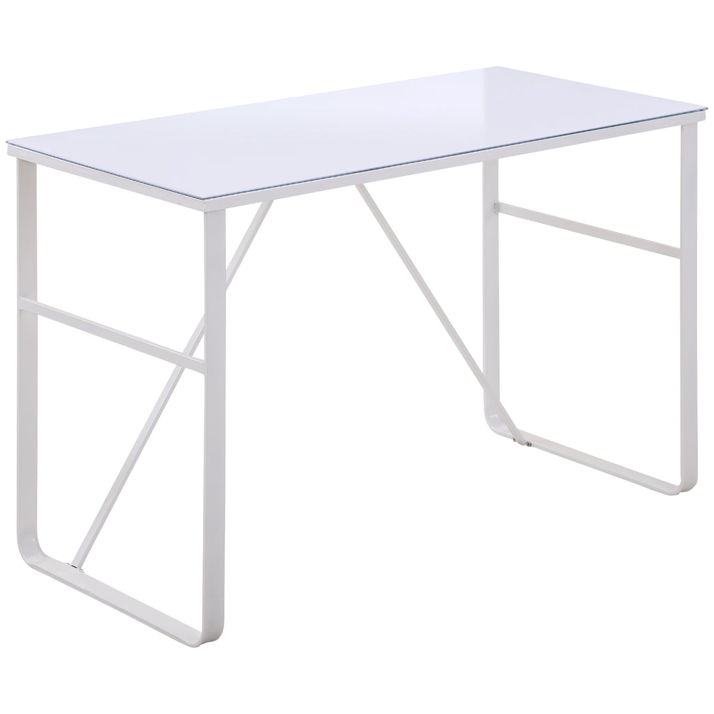 Questa scrivania per camera ha una struttura robusta, ma elegante. Il suo design minimal e la finitura di colore bianco la rendono perfetta per ogni tipo di arredo: il piano d'appoggio in vetro temperato dà un tocco chic al tuo ambiente, ed è facilissimo da pulire.