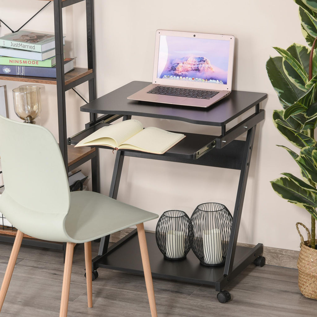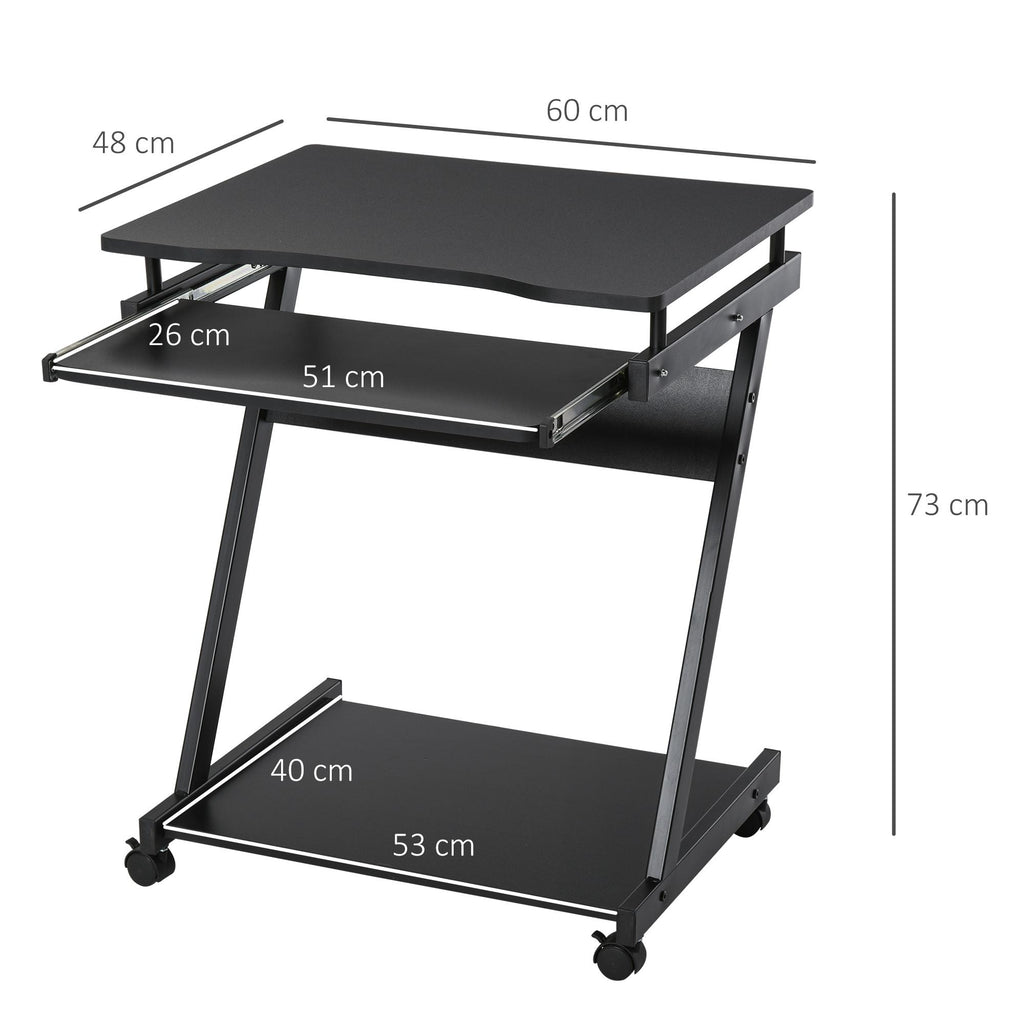 Scrivania Porta PC 60x48x73 cm con Ruote Nera