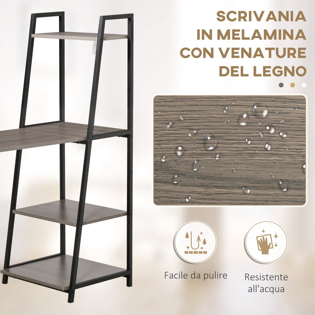 Scrivania Salvaspazio Pieghevole con Libreria 4 Livelli 106x48x128 cm in Legno e Metallo Grigio e Nero