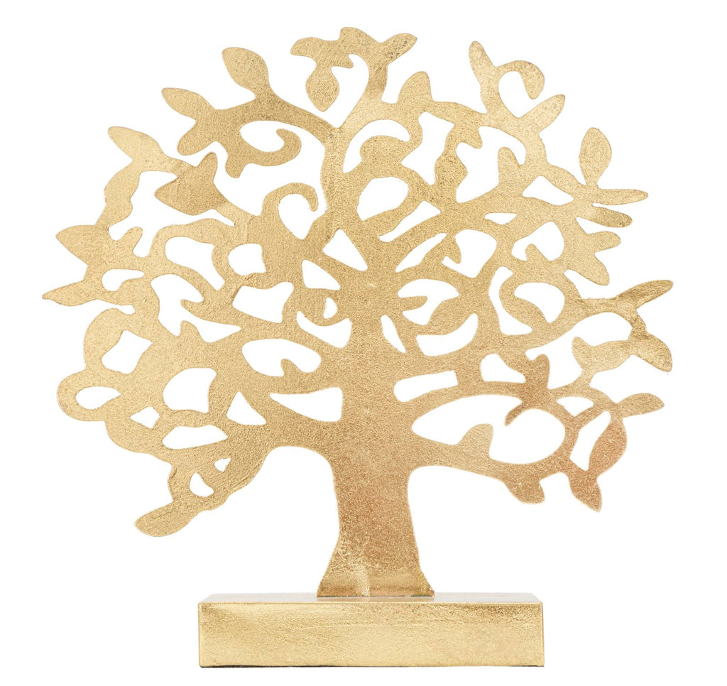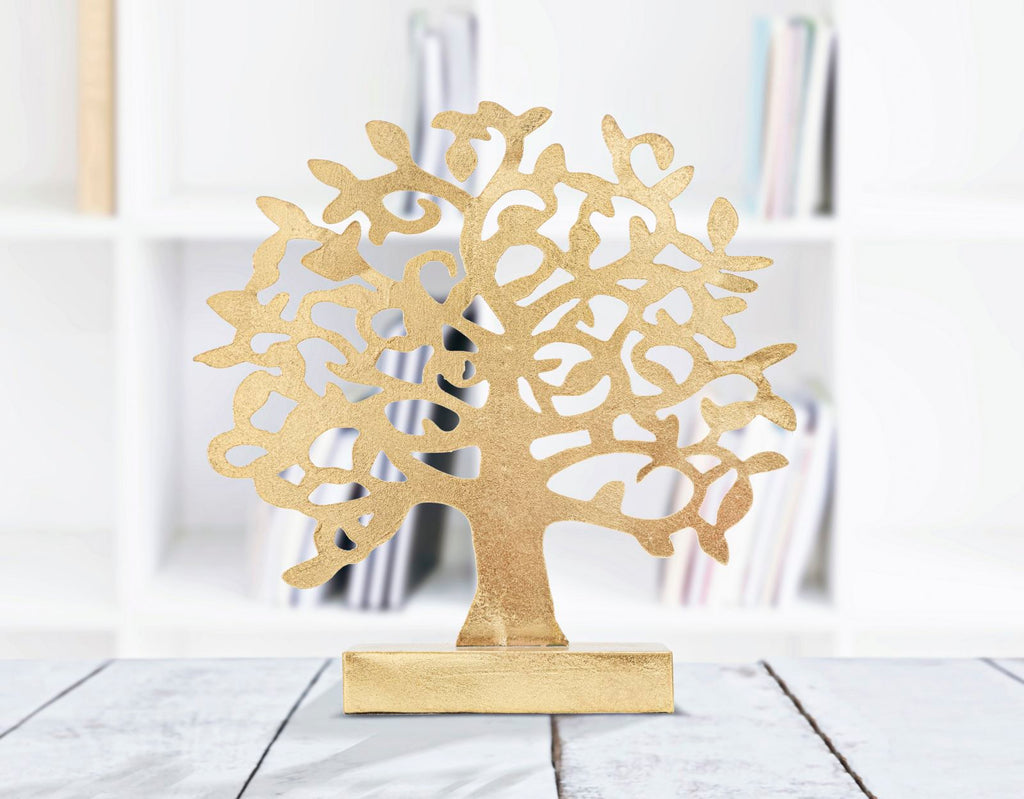Elegante decorazione in metallo dorato a forma di albero. Un tocco ricercato e di classe per personalizzare ogni ambiente.