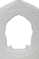 Statua con Buddha. Eleganti decor realizzati in porcellana consentono di donare un tocco di personalità alla propria casa o diventano ottime idee regalo. L'etnico si fa chic.