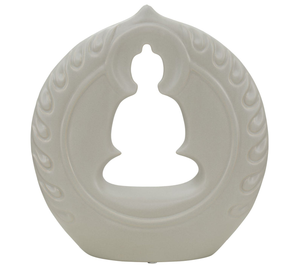 Statua con Buddha in meditazione. Eleganti decor realizzati in porcellana consentono di donare un tocco di personalità alla propria casa o diventano ottime idee regalo. L'etnico si fa chic.