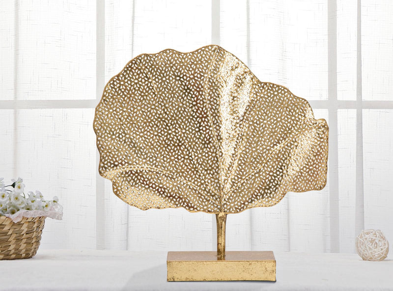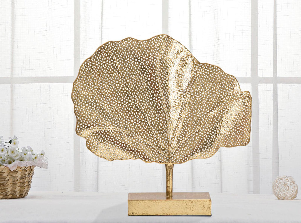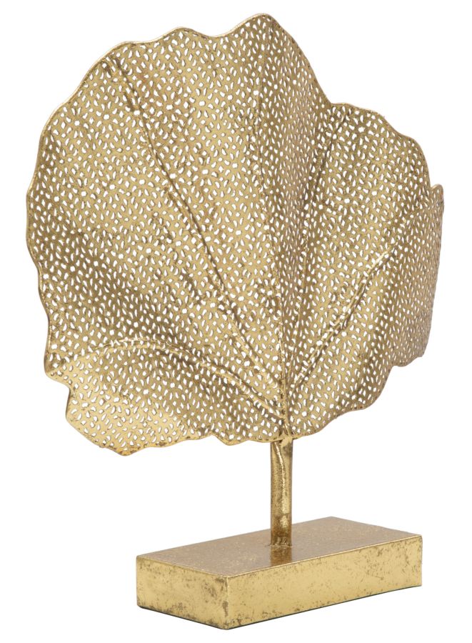 Scultura in metallo a forma di foglia. La natura come protagonista. I decor dorati sono un elemento irrinunciabile per dare un tocco glam ad ogni ambiente. Perfetti abbinati a colori neutri come il bianco ed il crema, audaci e retrò se accostati a tinte forti