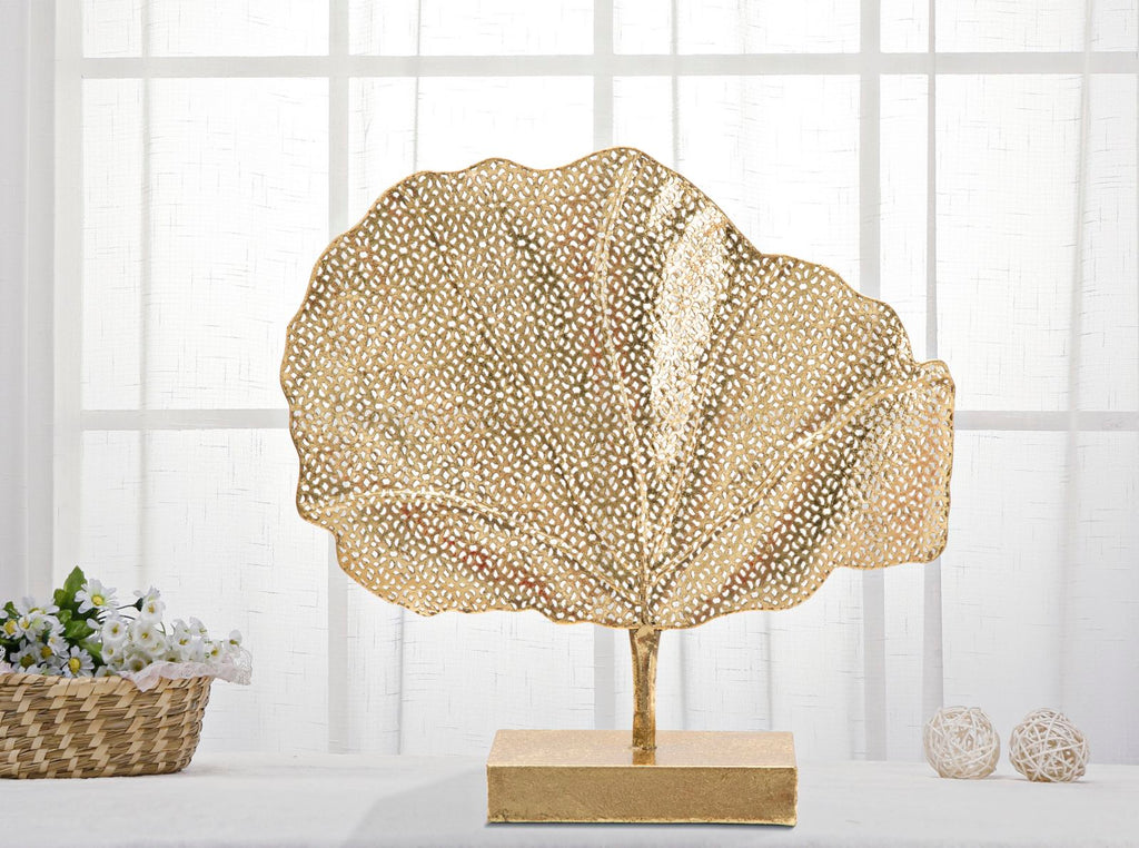 Scultura in metallo a forma di foglia. La natura come protagonista. I decor dorati sono un elemento irrinunciabile per dare un tocco glam ad ogni ambiente. Perfetti abbinati a colori neutri come il bianco ed il crema, audaci e retrò se accostati a tinte forti