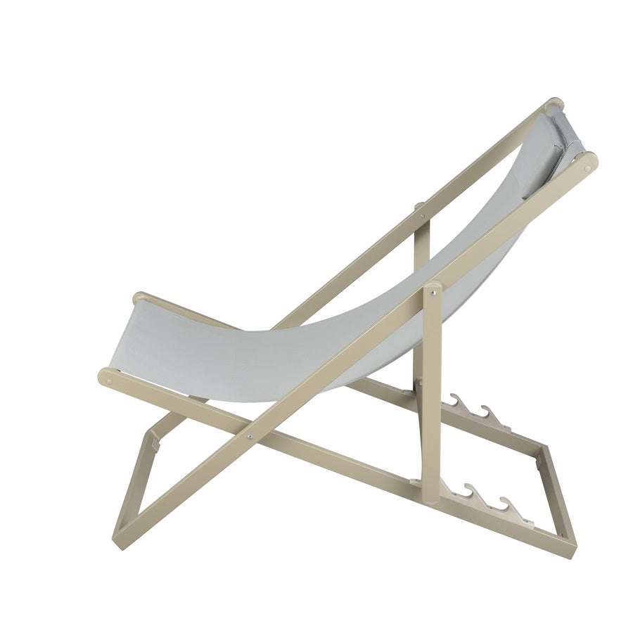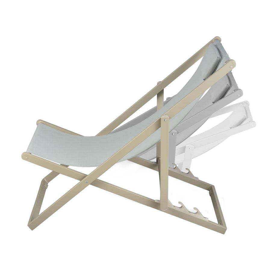 Se ami rilassarti a bordo piscina o nel tuo giardino, prova la sedia sdraio da giardino Gilda. Scopri il tocco di stile unico di questo complemento d'arredo esterno realizzato con struttura in alluminio color ecrù ed un textilene 610 gr color grigio chiaro.