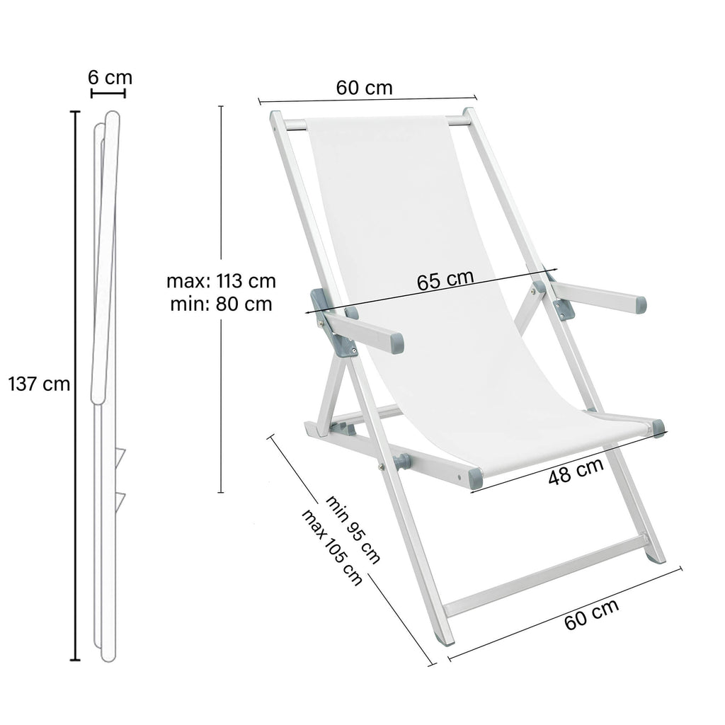 Sdraio da Giardino Pieghevole 98x67x106 cm in Alluminio e Textilene Olaf Bianco