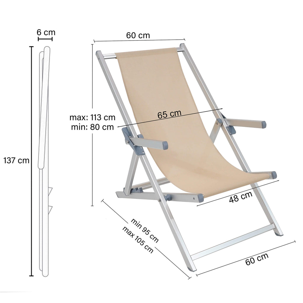 Sdraio da Giardino Pieghevole 98x67x106 cm in Alluminio e Textilene Olaf Taupe