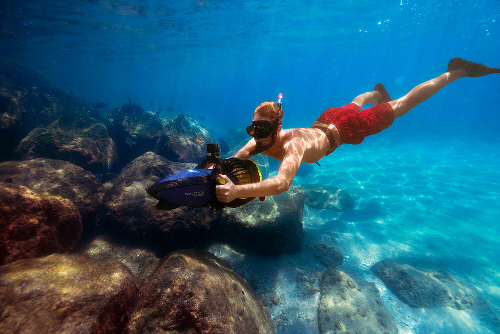 Il Seascooter Nautica Navtech I è il modello di punta della linea Professional Dive Series. Si tratta di un Diver Propulsion Vehicle (DPV) Elettrico con batteria Li-ion ricaricabile in meno di dieci ore con durata fino a 90 minuti in base al tipo di utilizzo. Navtech I trasporta i subacquei attraverso l'acqua ad una velocità massima raggiungibile in base alle condizioni di 7Km/h ed è perfetto per praticare immersioni Subacquee, snorkeling o anche semplicemente per divertirsi in acqua. Dotazione completa di accessori inclusi tra cui, pinne stabilizzatrici, elementi galleggianti e pesi per zavorra.