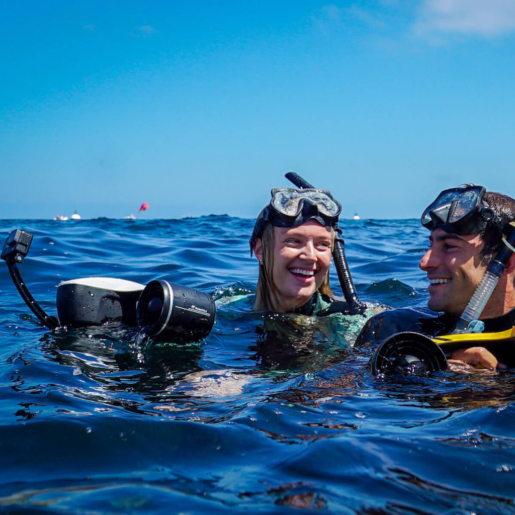 Seaflyer è il DPV di Robosea dotato di doppio propulsore e schermo OLED. Con una batteria Li-Ion da 14.8V / 10Ah che fornisce fino a 40 minuti di utilizzo ed i due motori elettrici che erogano una sorprendente velocità di punta fino ad 7Km/h con cambio a due rapporti, il divertimento è portato al livello superiore. Disponibile in tre diverse colorazioni, SeaFlyer è il veicolo ideale per chi desidera divertirsi in acqua ed assicurarsi un prodotto prestazionale e versatile, trasportabile anche in aereo.