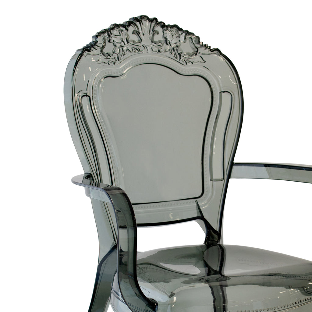 Sedia dal design unico e particolare, la sedia Chimera rivisita in chiave moderna le classiche sedie imbottite e decorate da intarsi sullo schienale grazie al materiale in cui è realizzata, il metacrilato, che le regala un tocco di modernità. Risulta comoda, leggera e così particolare che ben si adatta ad ogni ambiente, sia in una sala da pranzo moderna o classica, sia in ufficio o sala d'aspetto.