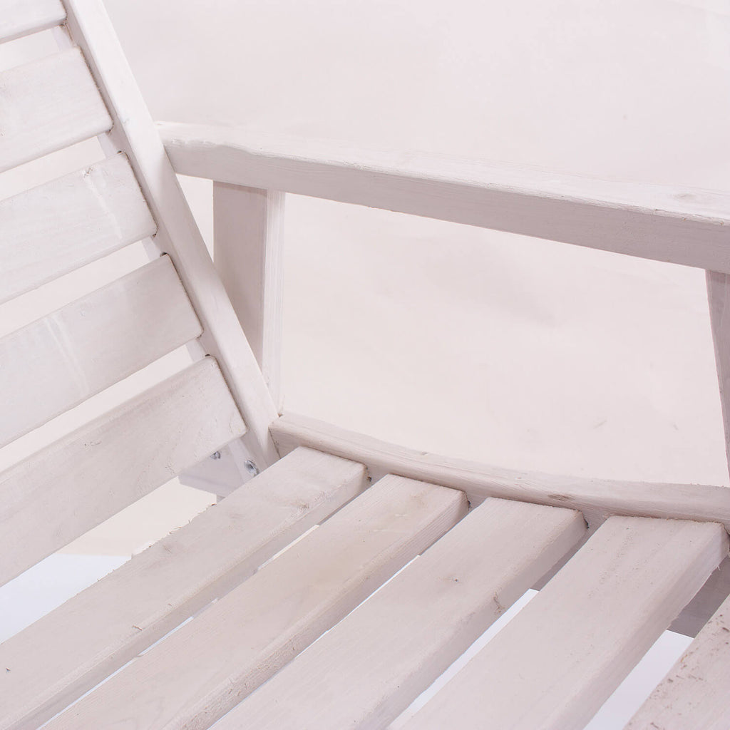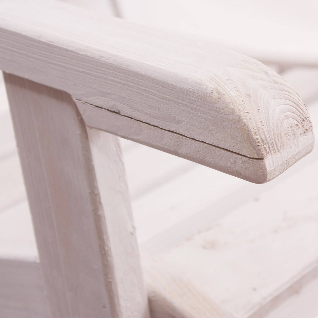 Sedia a dondolo bianca in legno di abete con braccioli. Adatto per la spiaggia o il giardino. Il prodotto viene ocnsegnato montati.