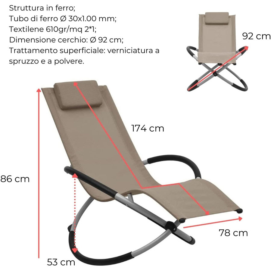 Sedia a Dondolo da Giardino ellittica 174x78x86 cm Ecrù