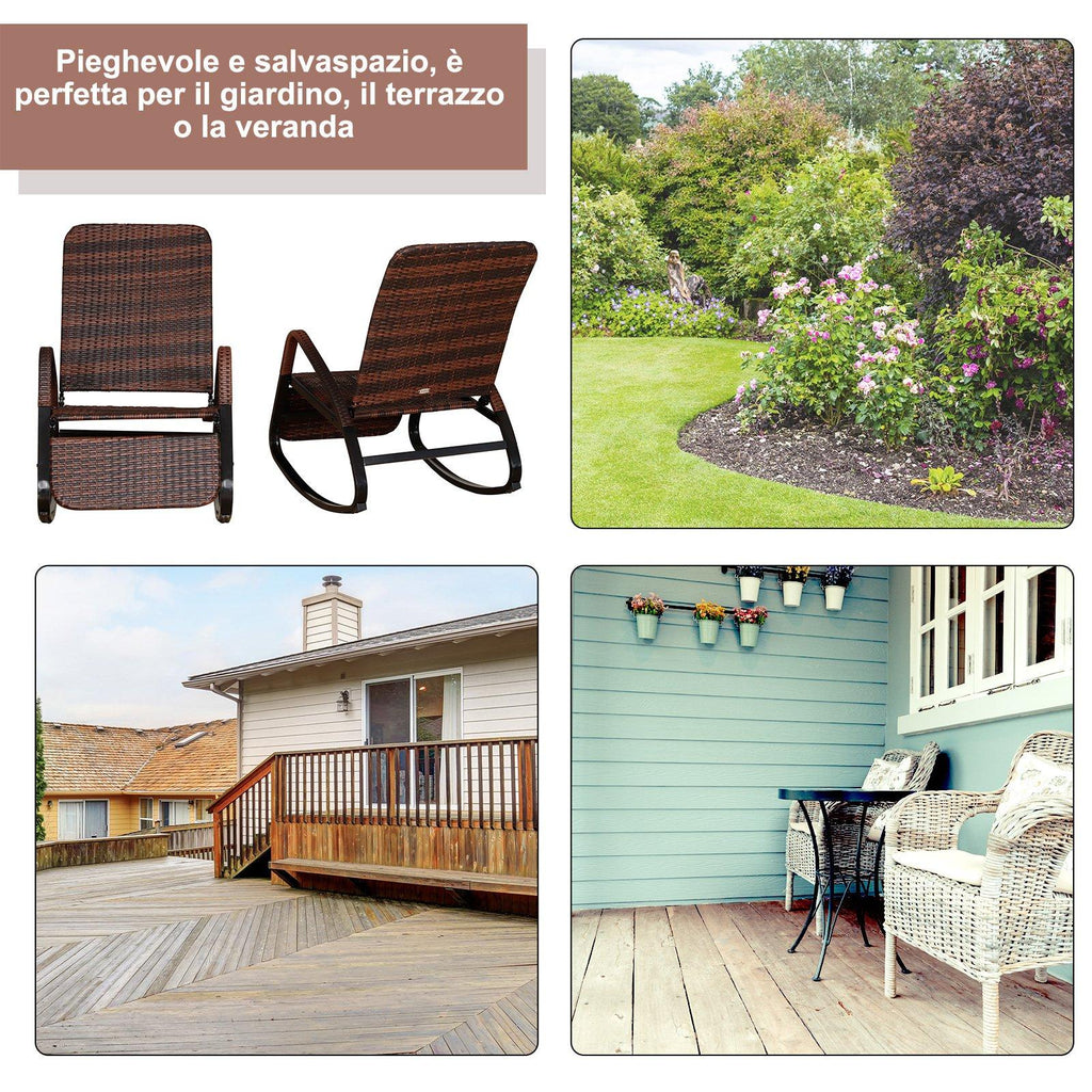 Sedia a Dondolo da Giardino Reclinabile e Pieghevole in Rattan Marrone