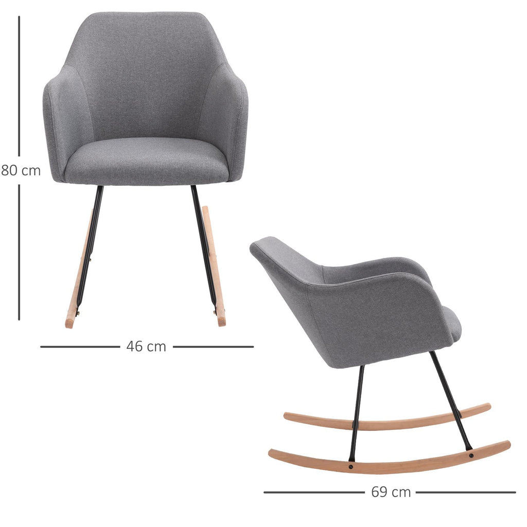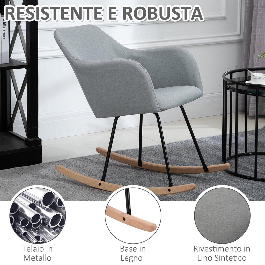 Sedia a Dondolo in Metallo e Tessuto Lino 46x69x80 cm Grigio Chiaro