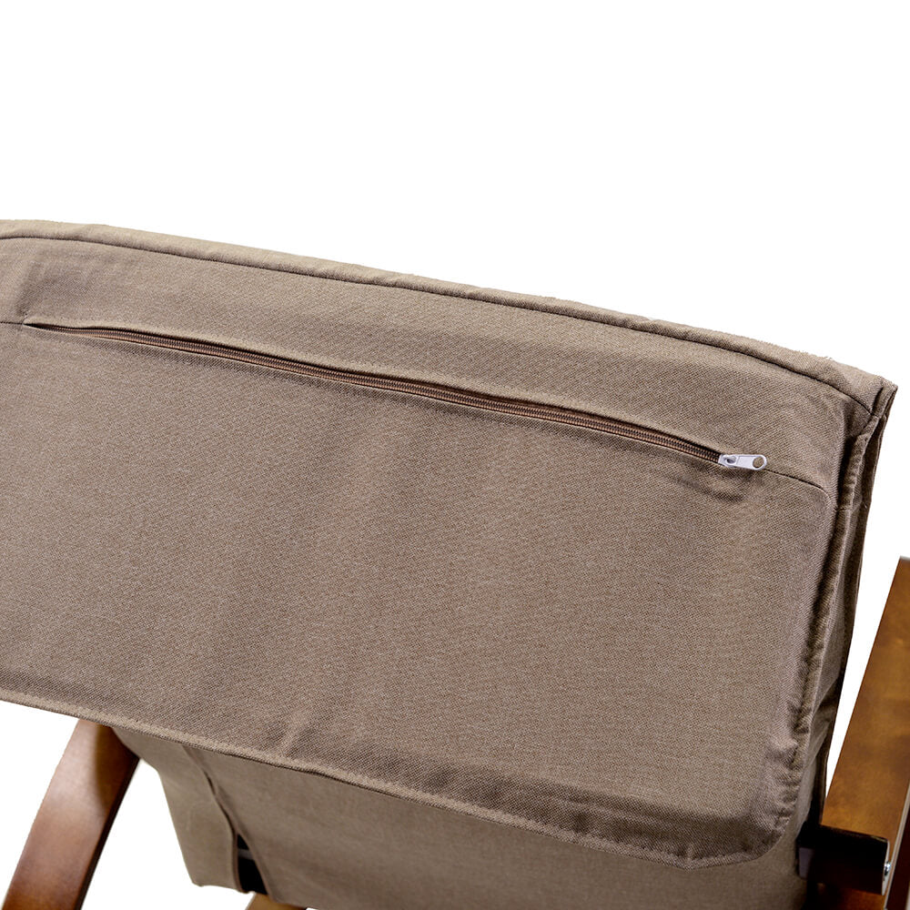 Sedia a Dondolo in Tessuto e Legno con Cuscino e Poggiapiedi 67x130xH95cm Crema