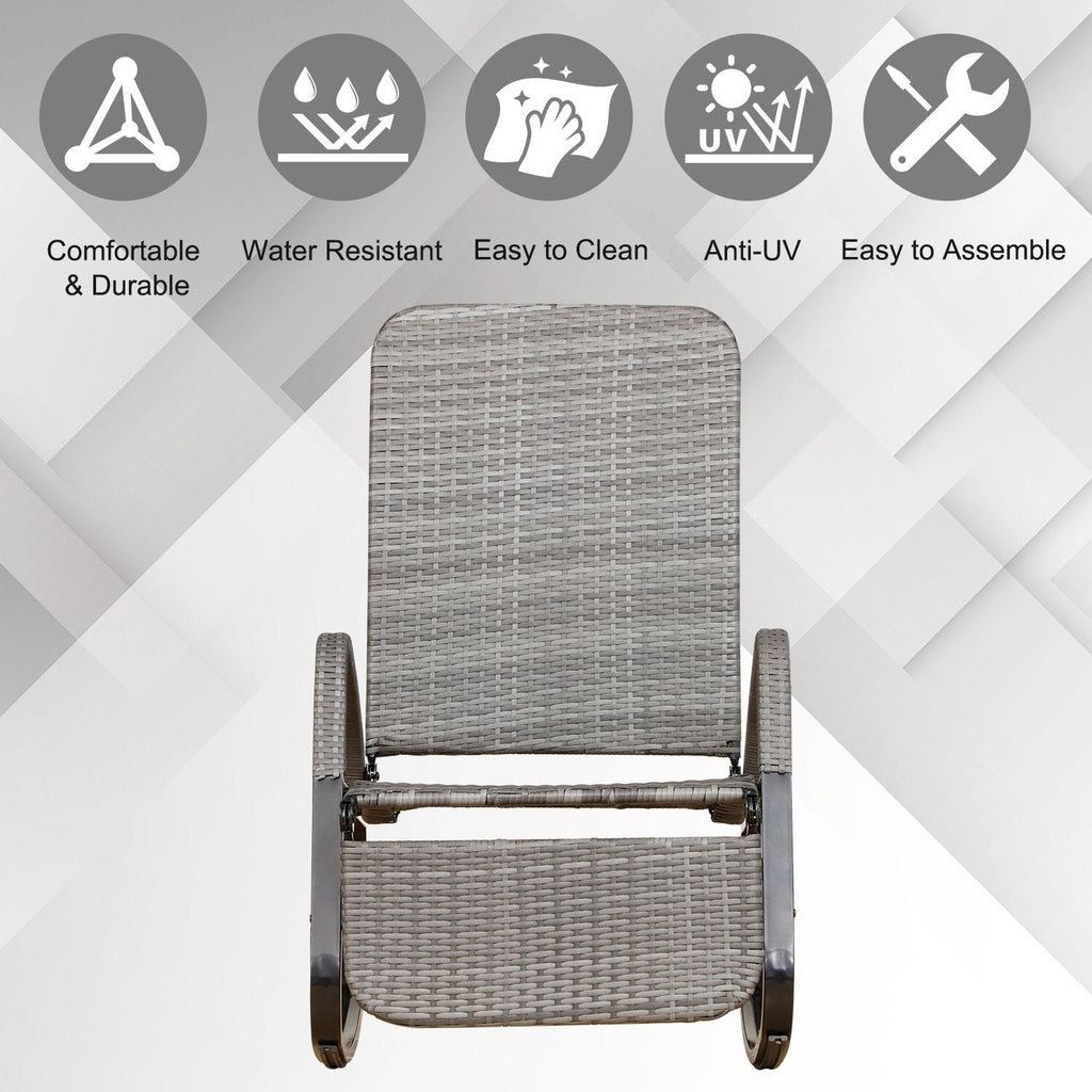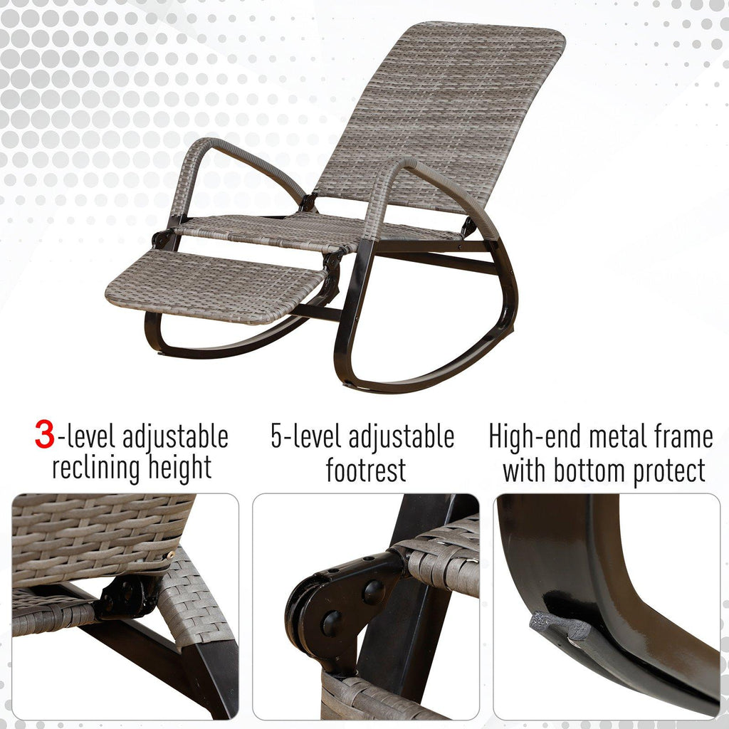 Sedia a Dondolo Pieghevole con Braccioli 90x64x108 cm in Metallo e Rattan Grigia