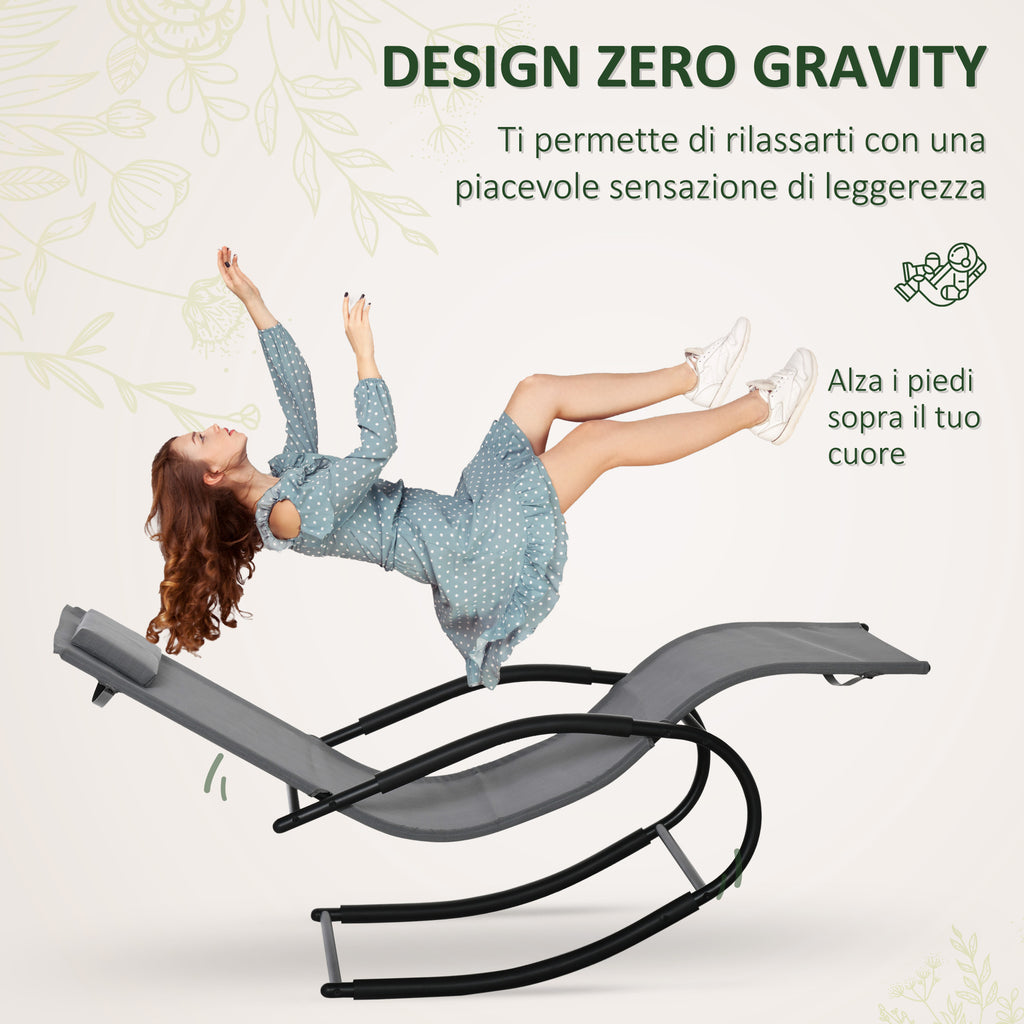 - SDRAIO ZERO GRAVITY: Questa sdraio a dondolo con design a gravità zero ti permette di rilassarti con una piacevole sensazione di leggerezza, per un comfort senza pari. La chaise longue è dotata di un cuscino poggiatesta rimovibile, ha una seduta ergonomica e braccioli rivestiti per sostenerti al meglio.
