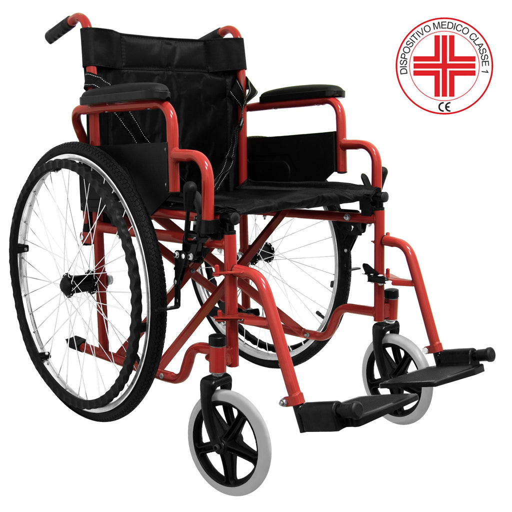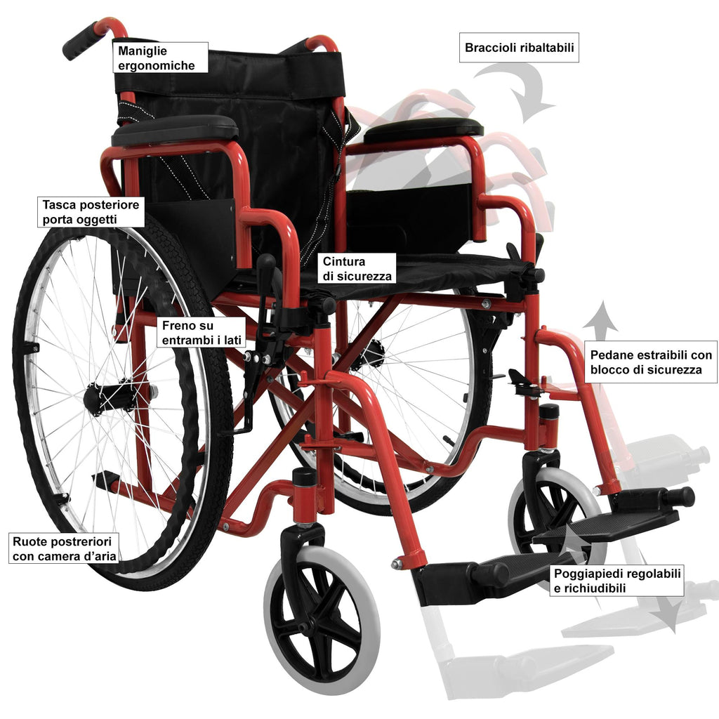 Caratteristiche Tecniche Sedia a Rotelle Pieghevole ad Auto Spinta in Acciaio Rizzetti Rossa
