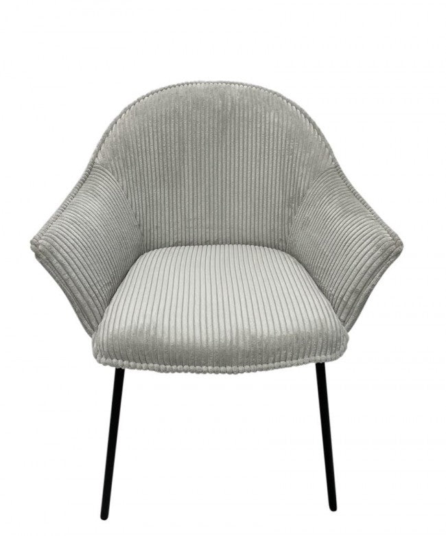 La sedia con braccioli presenta una seduta in compensato con imbottitura in schiuma poliuretanica, rivestimento realizzato al 100% in poliestere. Le gambe sono in acciaio verniciato a polvere epossidica, richiedendo assemblaggio. Questa combinazione di materiali offre comfort, durabilità e uno stile moderno alla sedia. Con braccioli per un sostegno aggiuntivo, questa sedia è pensata per offrire sia funzionalità che design in vari contesti, come sala da pranzo, ufficio o spazi di lavoro.