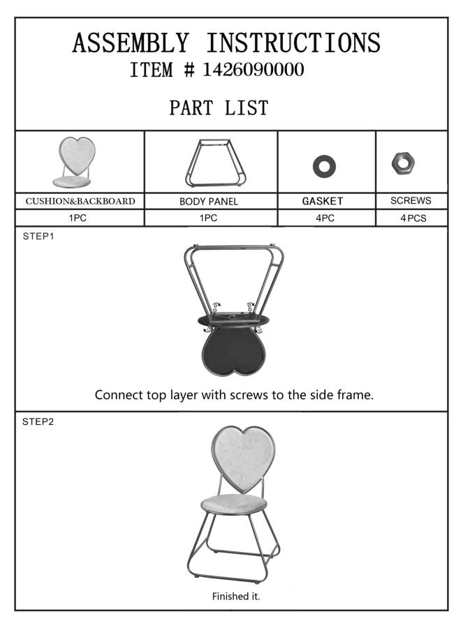 Sedia con Schienale a Cuore 37x47x80 cm in Metallo e Tessuto Imbottito