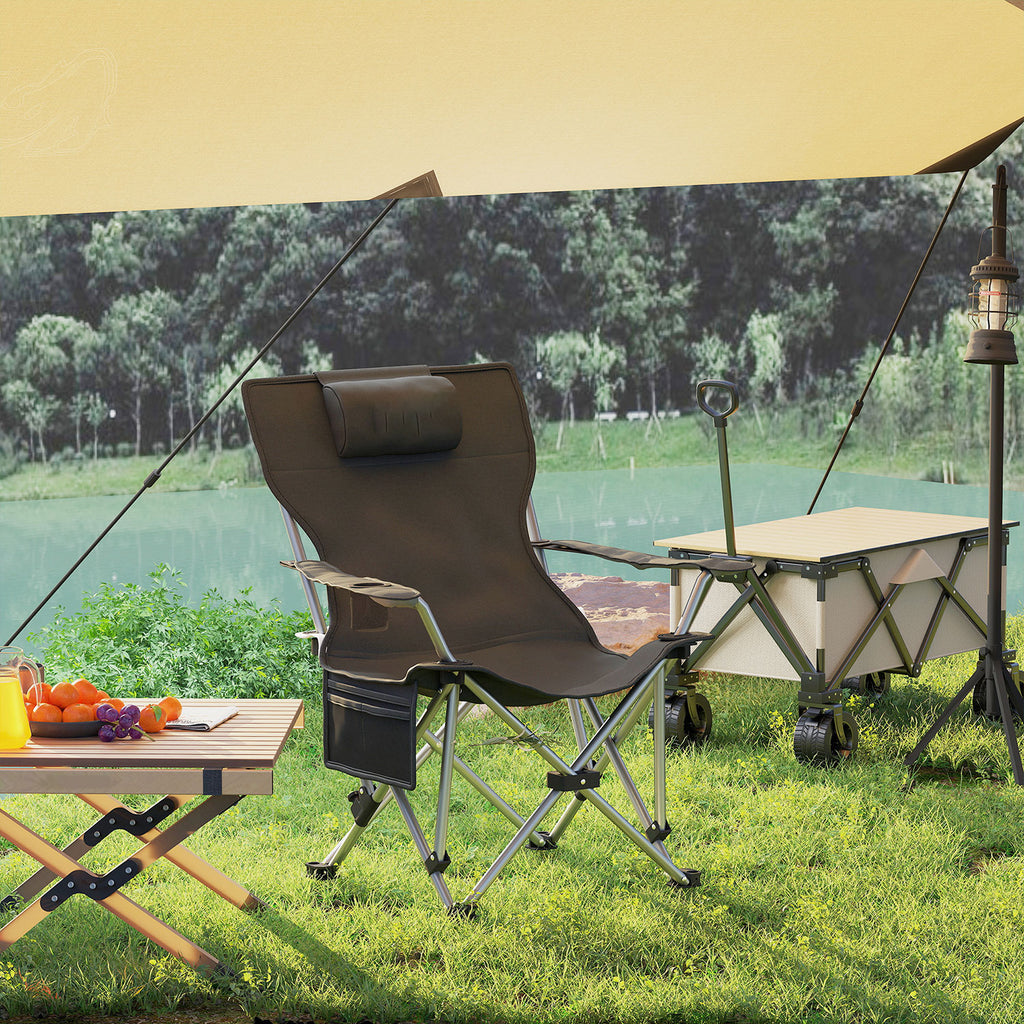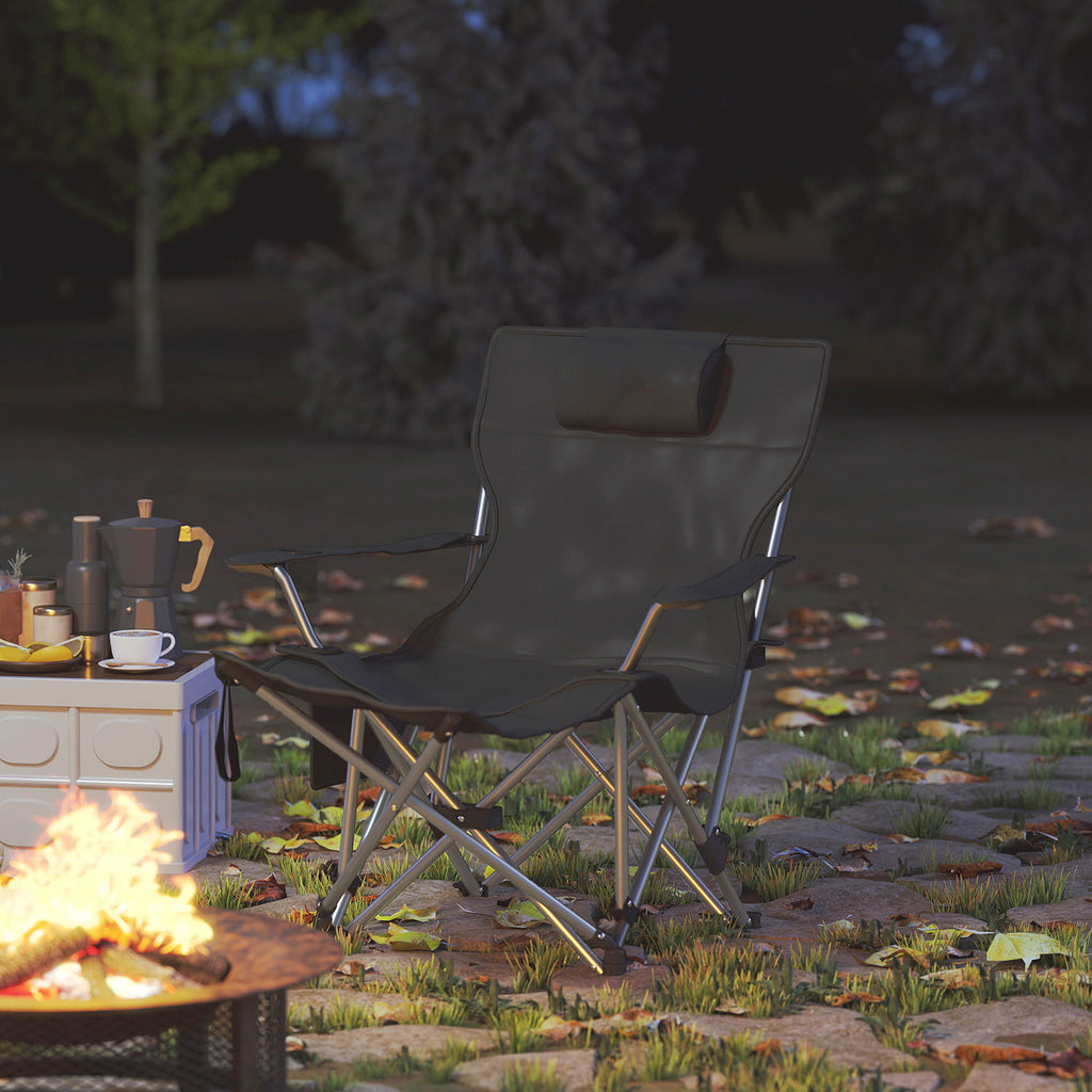Esplora il comfort supremo nelle tue escursioni con la sedia da campeggio, dotata di un poggiapiedi rimovibile e un poggiatesta soffice per un comfort personalizzato. Realizzata in tessuto Oxford 600D anti-schizzo, questa sedia pieghevole da campeggio unisce resistenza e praticità. Con il porta bicchiere integrato e la tasca laterale hai tutto a portata di mano e grazie al design pieghevole riponi la poltroncina facilmente nella borsa inclusa.