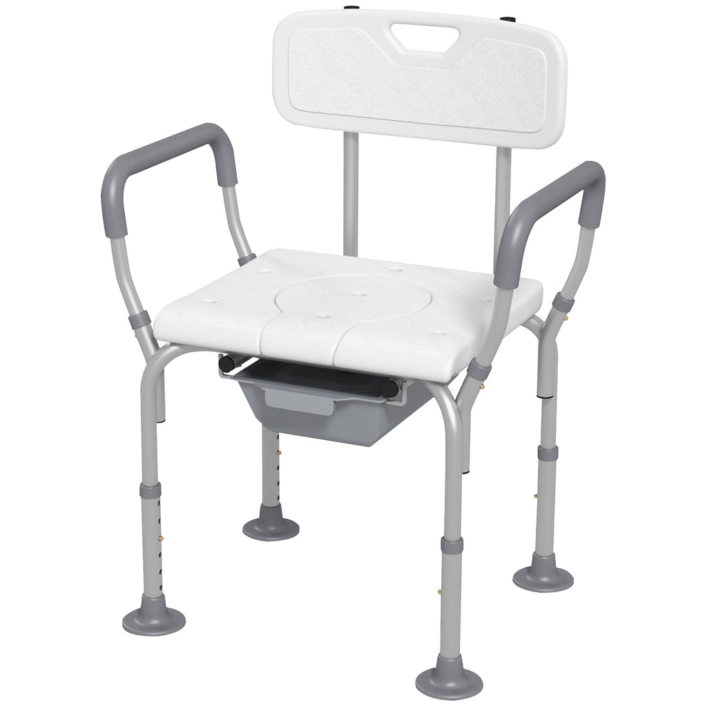 Sedia da Doccia 3 in 1 con Schienale e Braccioli Altezza Regolabile e Piedini Antiscivolo Bianco