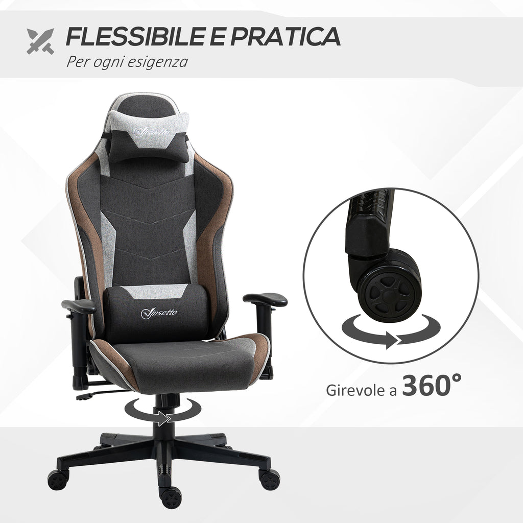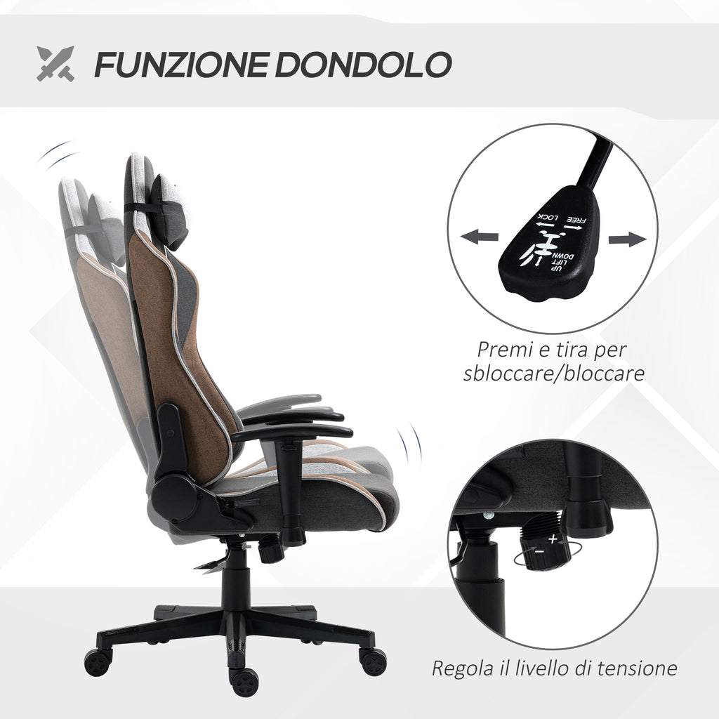 Sedia da Gaming 66x53x124-134 cm Reclinabile a 150° con Funzione Dondolo Grigio