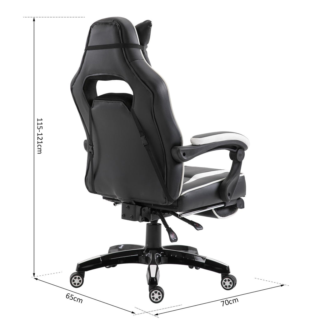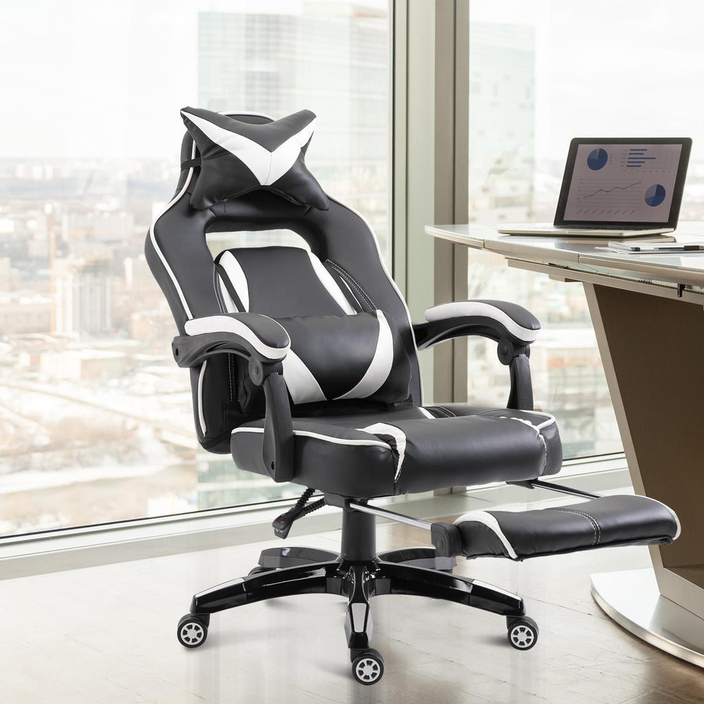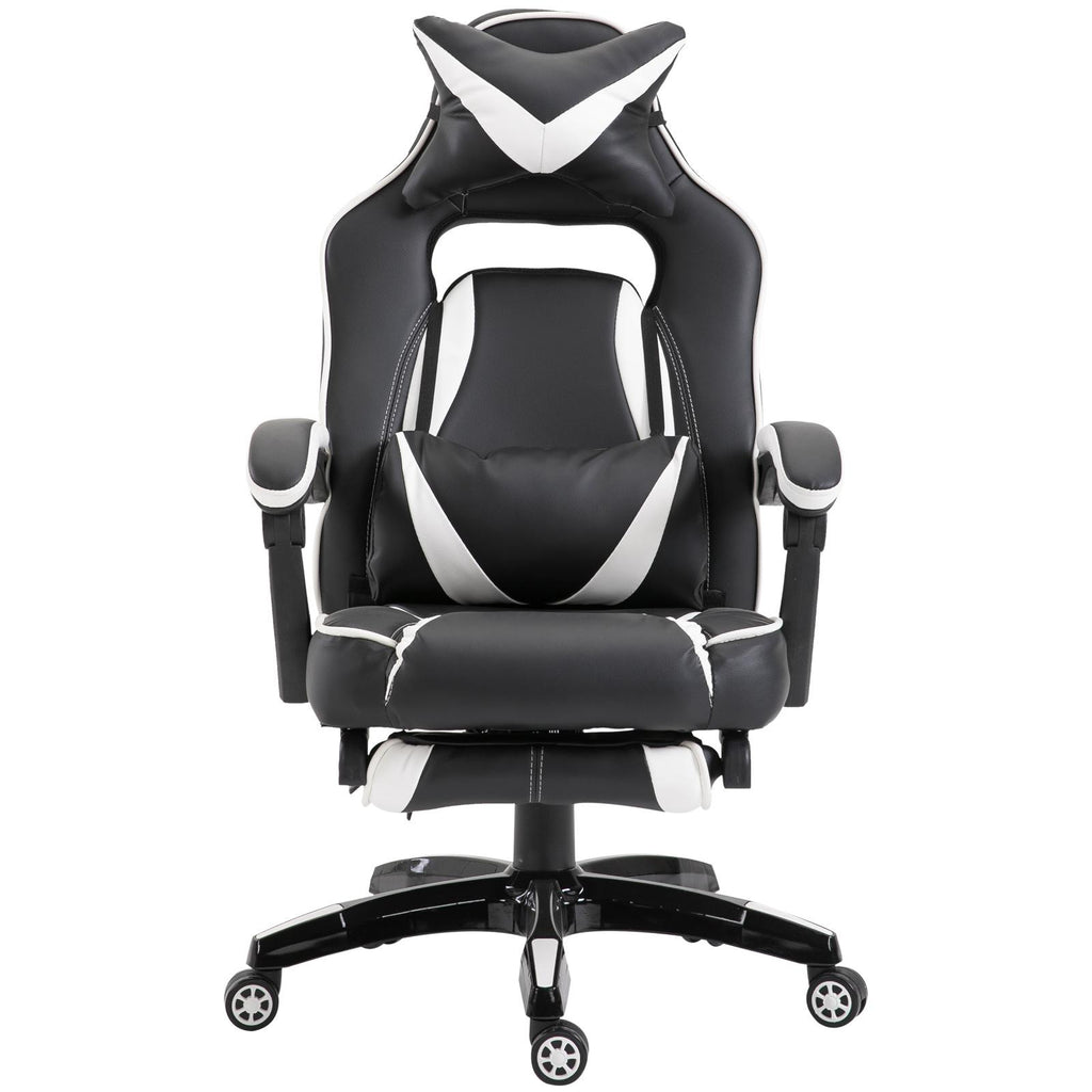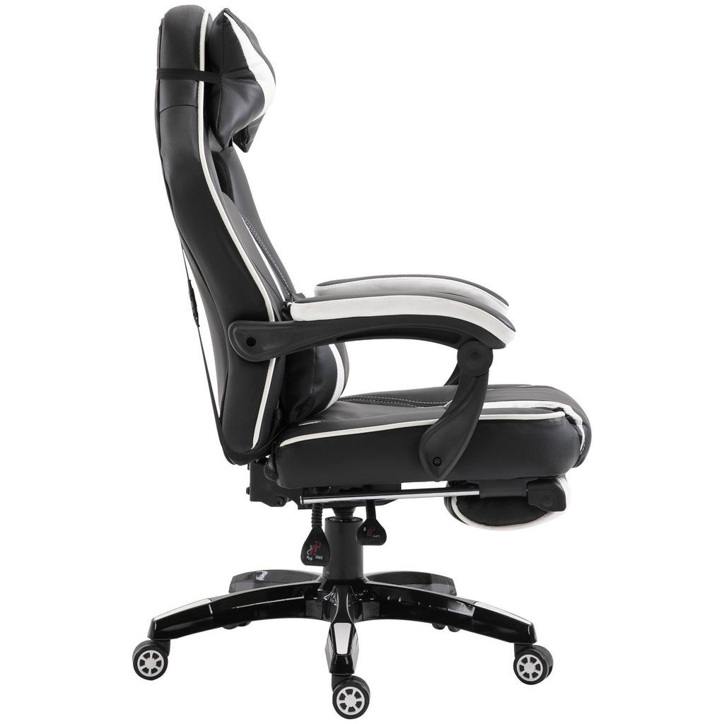 Sedia da Gaming con Rotelle in Similpelle Bianco e Nero