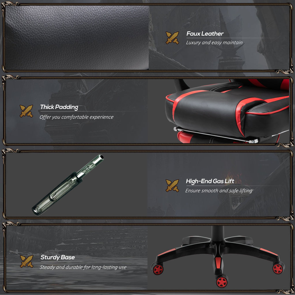 Sedia da Gaming con Rotelle in Similpelle Rosso e Nero