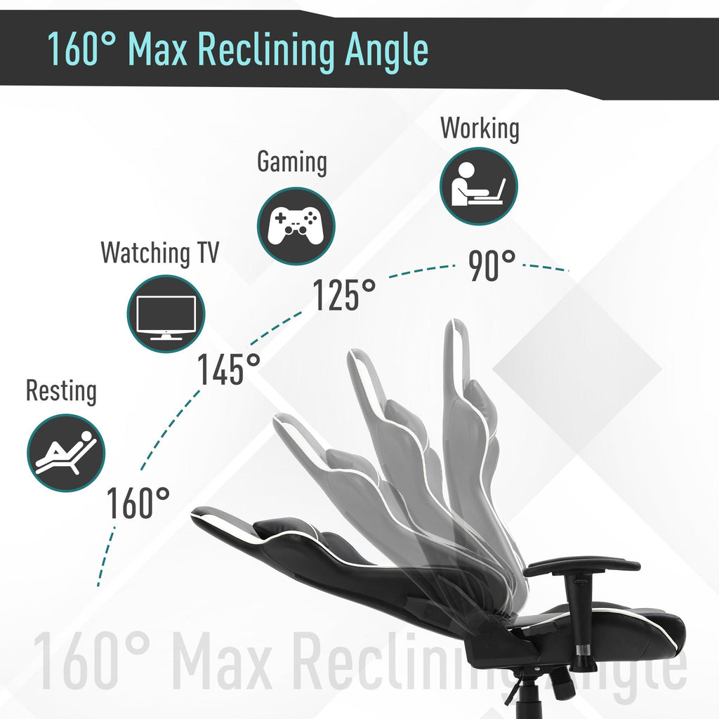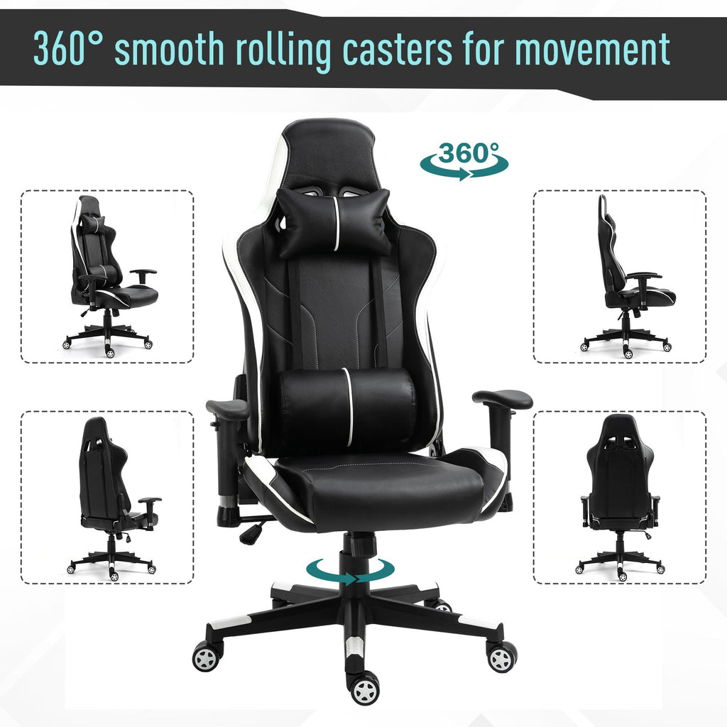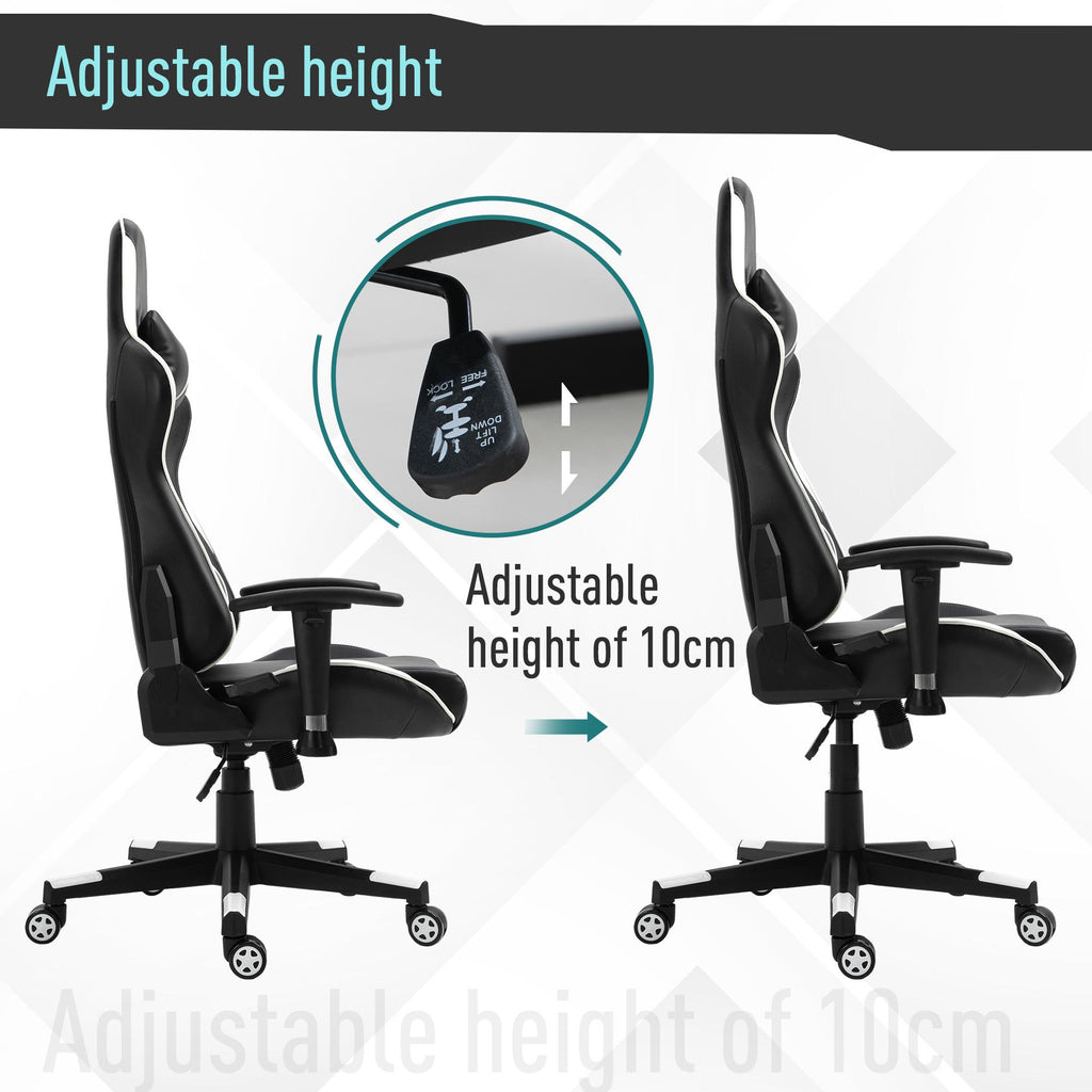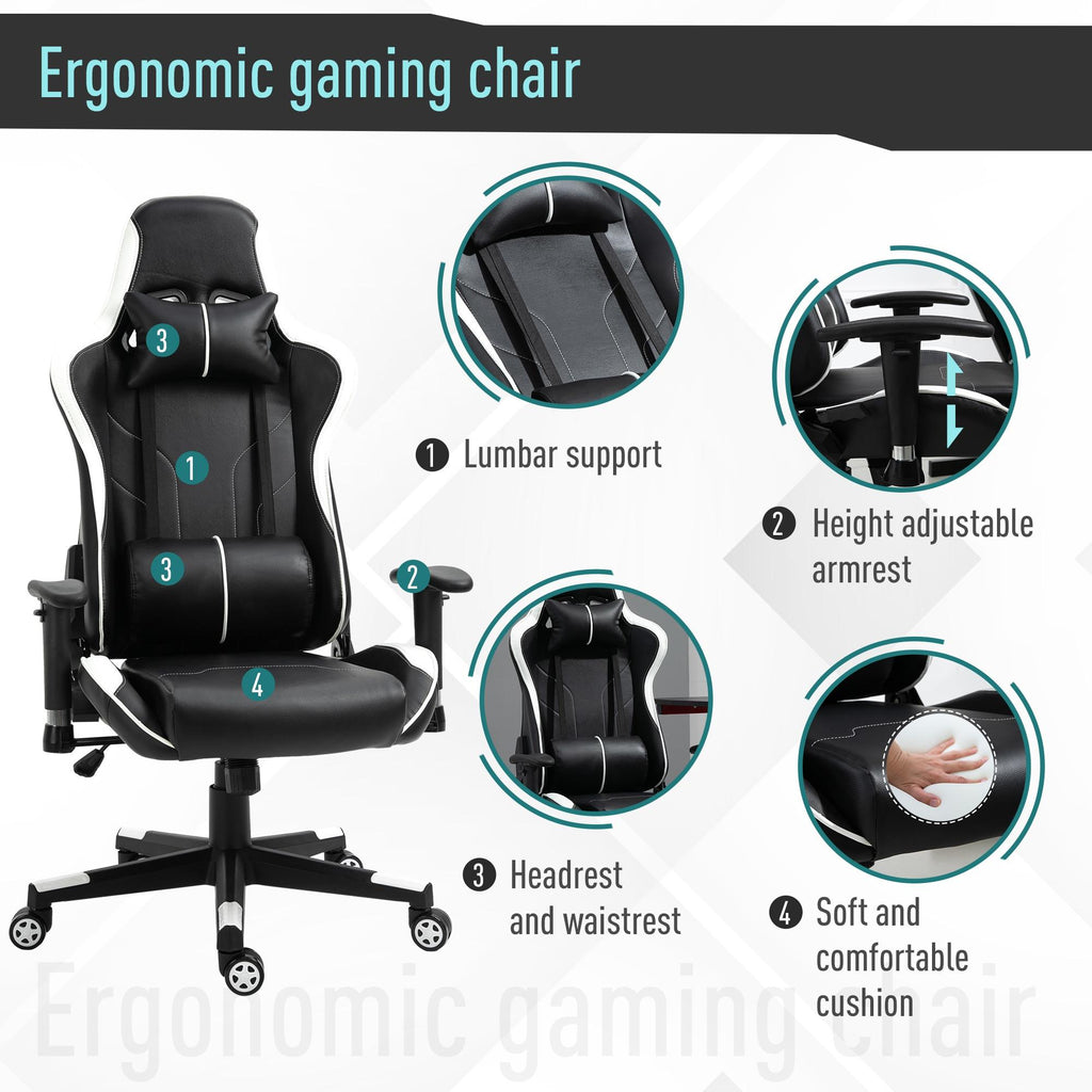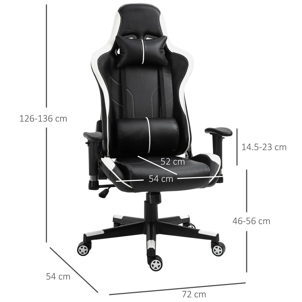 Sedia da Gaming Ergonomica 72x54x126-136 cm in PVC Nera e Bianco