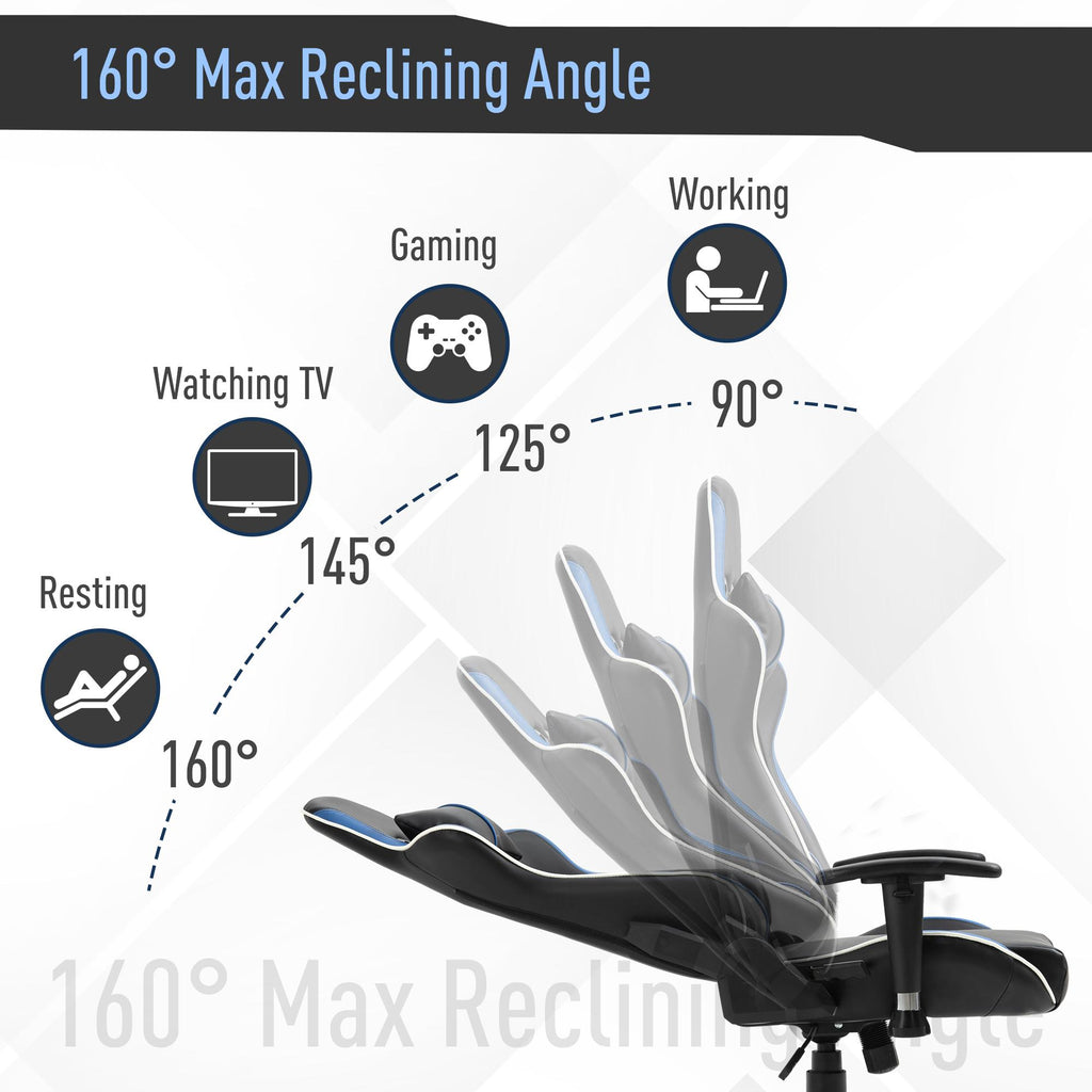 Sedia da Gaming Ergonomica 72x54x126-136 cm in PVC Nera e Blu