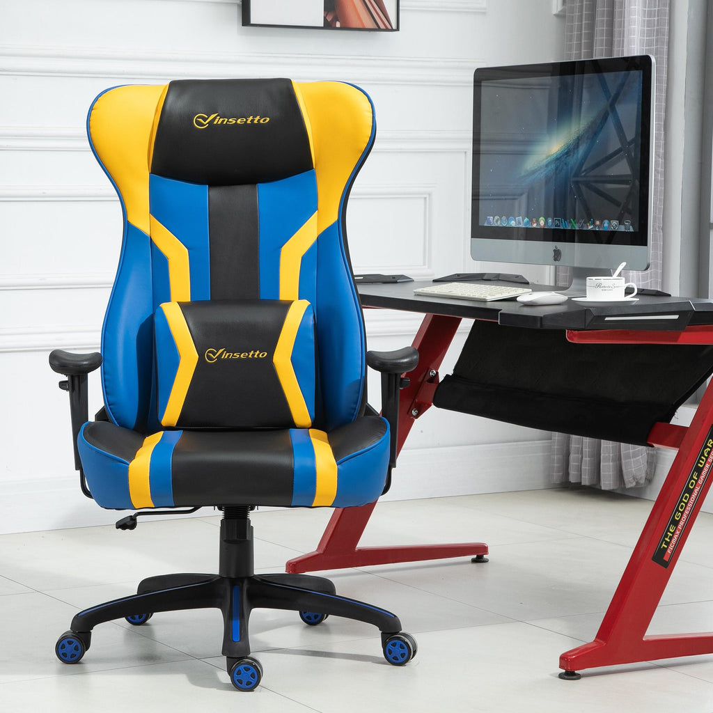Sedia da Gaming Ergonomica 74x63x118,5- cm Nera Blu e Giallo