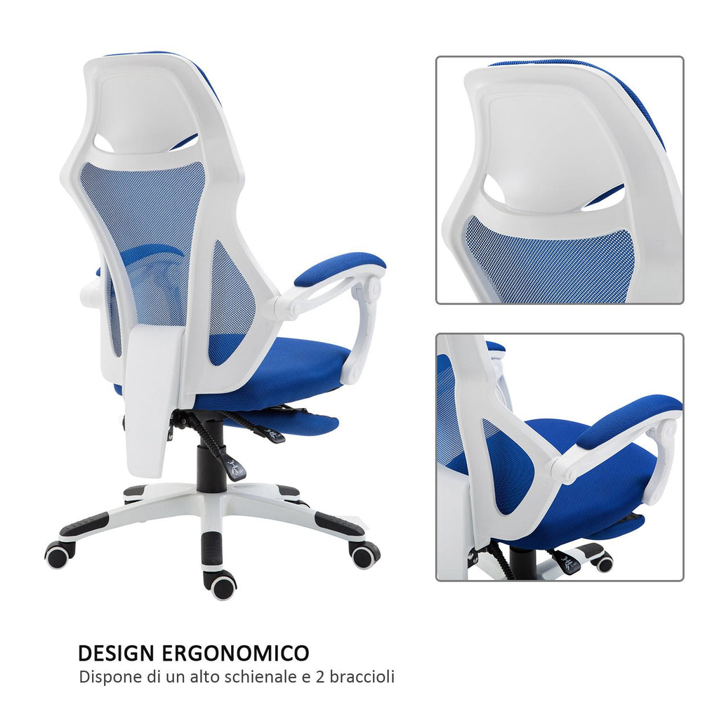 Sedia da Gaming Ergonomica Girevole e Reclinabile con Poggiapiedi Blu