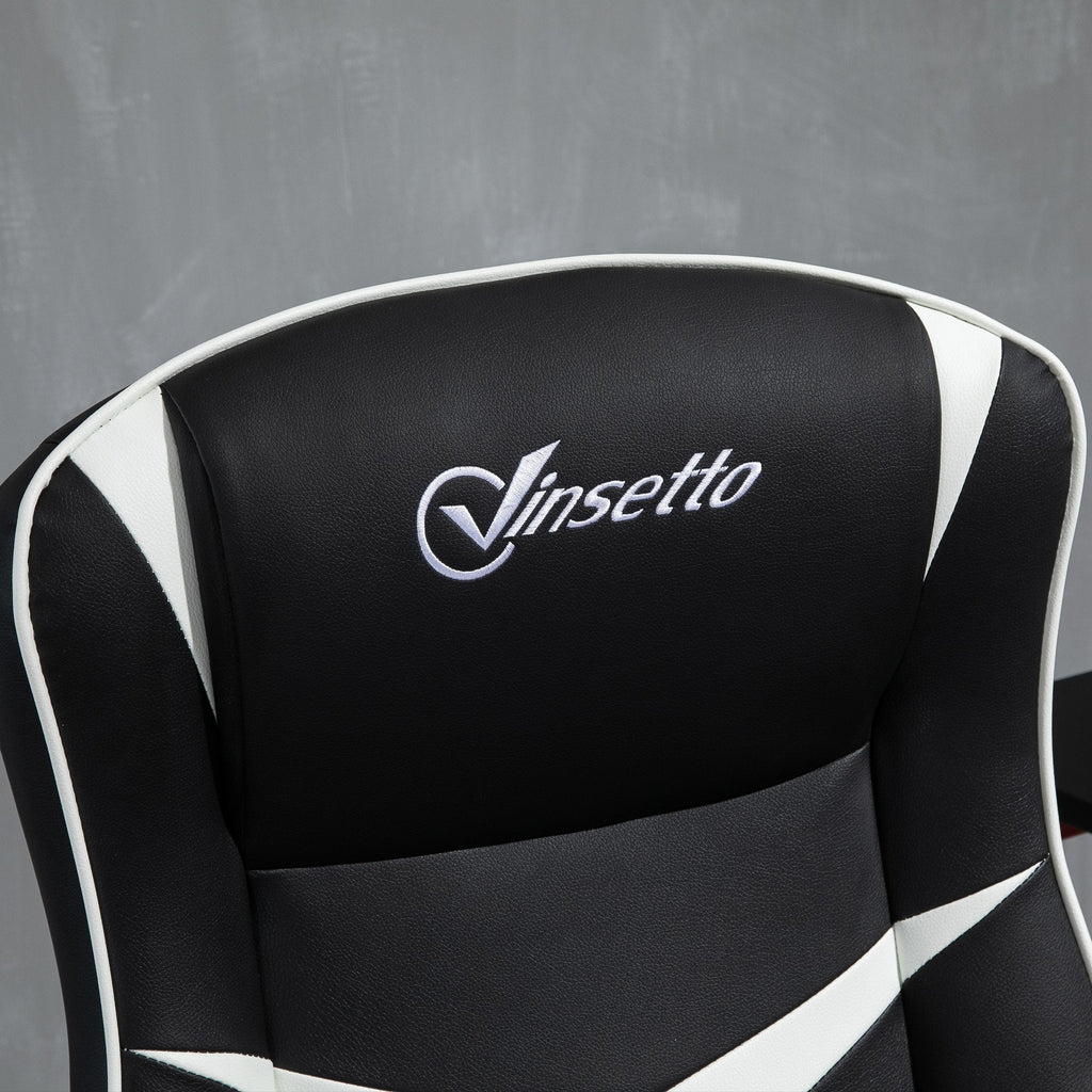 Sedia da Gaming Girevole Reclinabile in Similpelle Nera e Bianca
