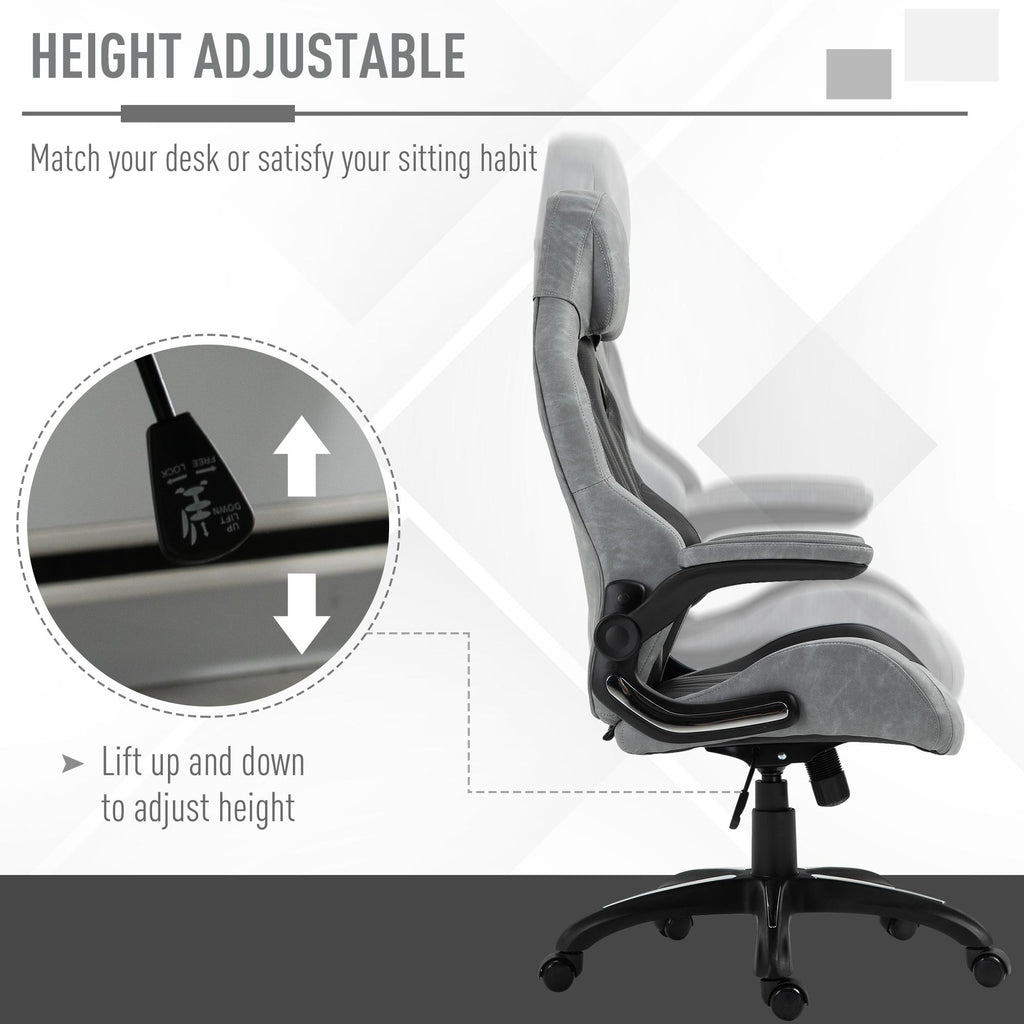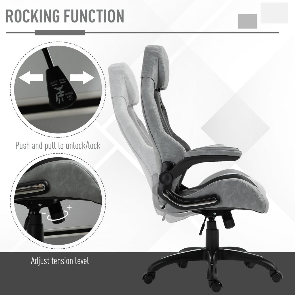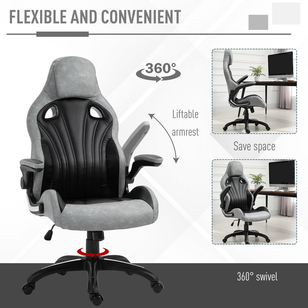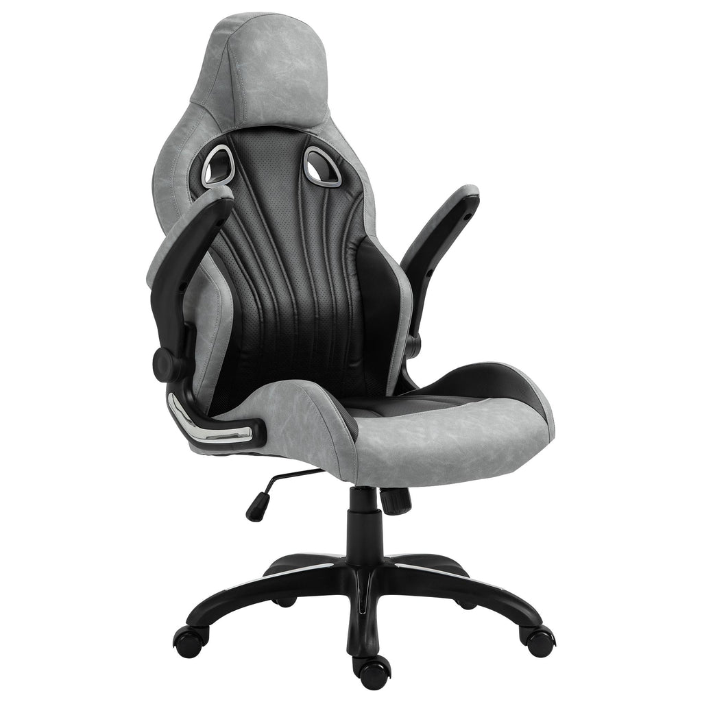Sedia da Gaming Girevole Reclinabile in Similpelle Nera e Grigia
