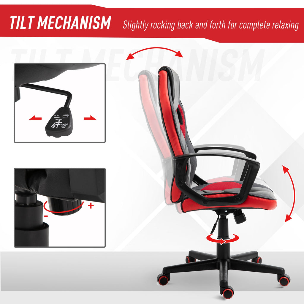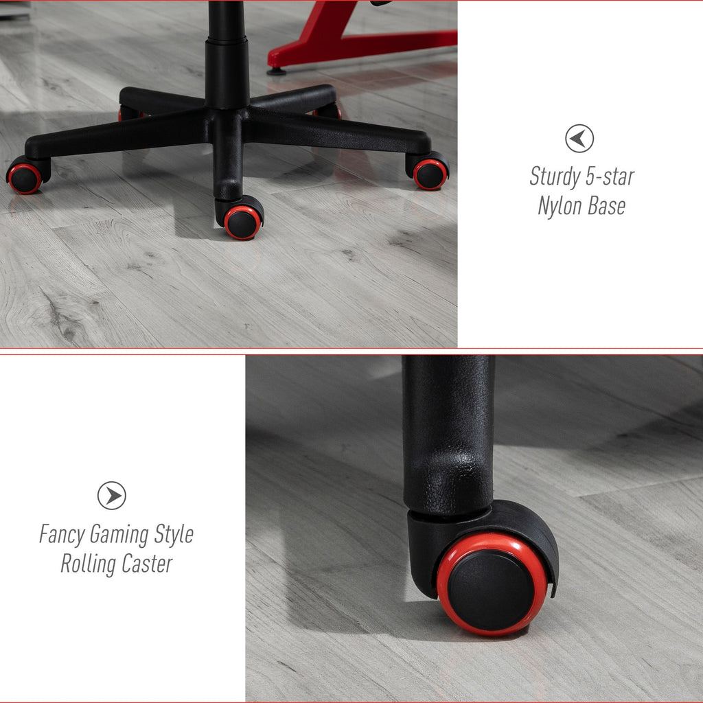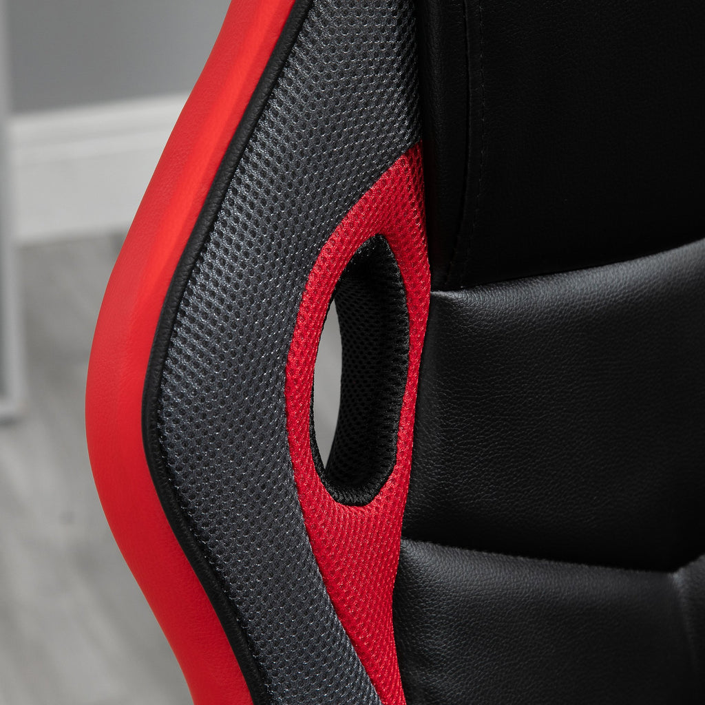 Sedia da Gaming Girevole Reclinabile in Similpelle Nera e Rossa