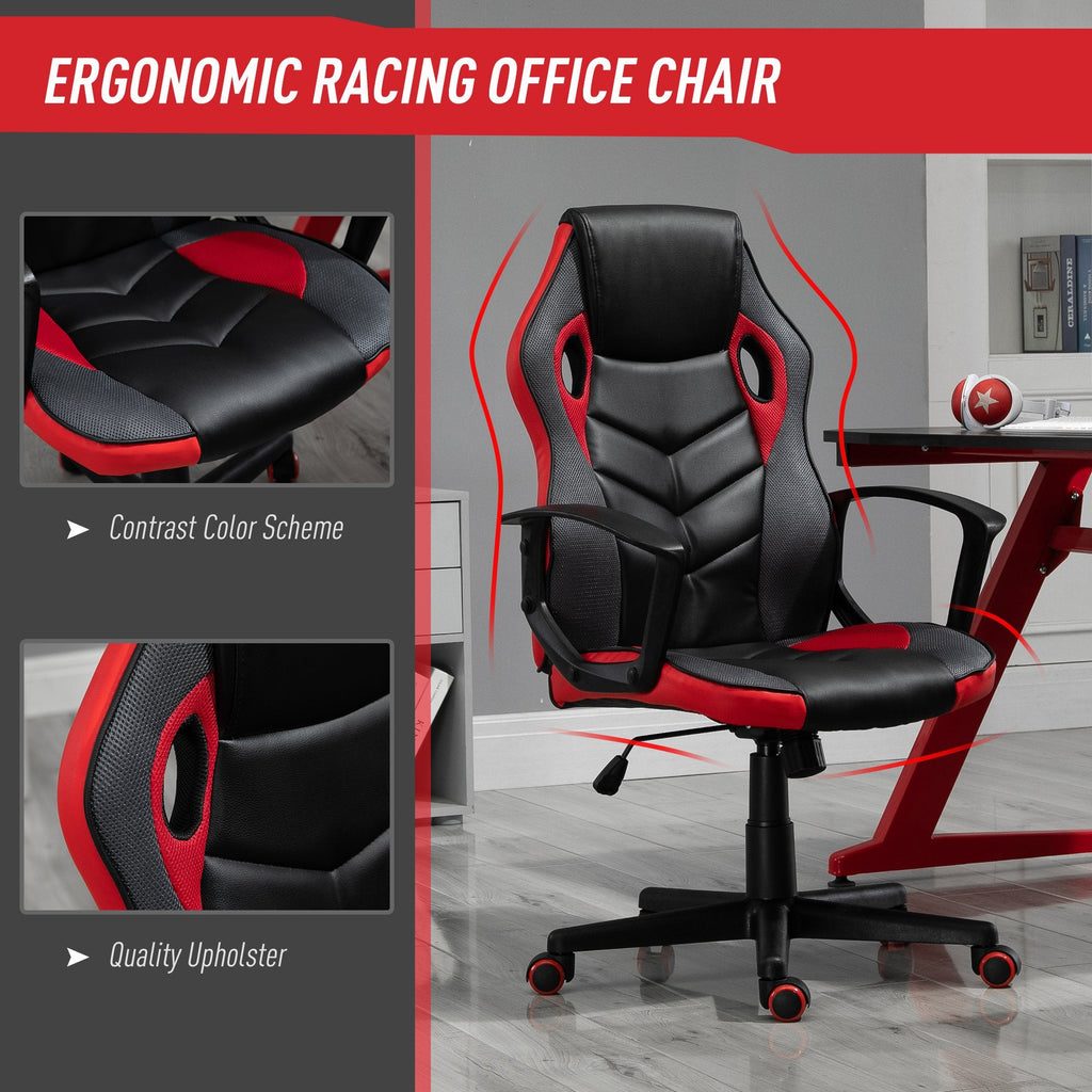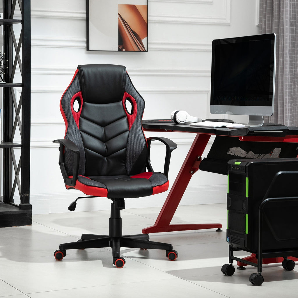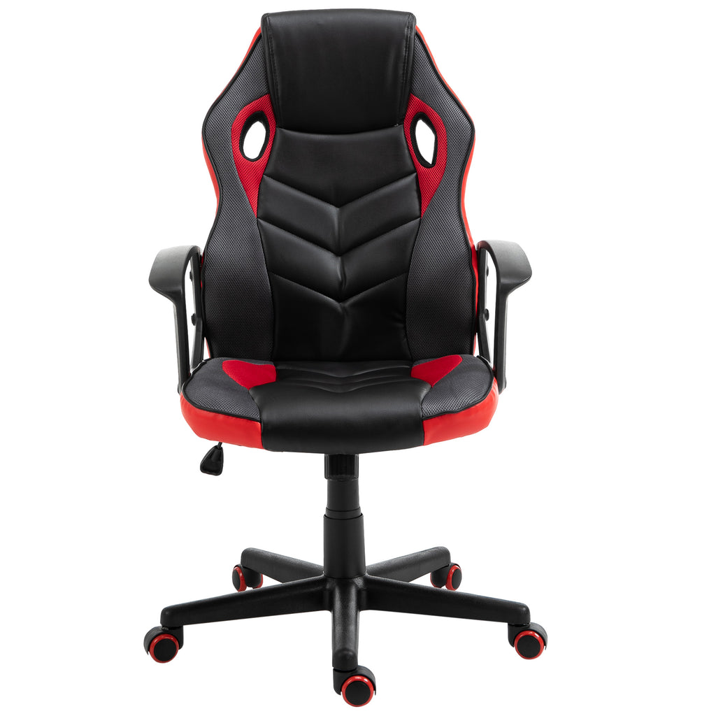 Sedia da Gaming Girevole Reclinabile in Similpelle Nera e Rossa