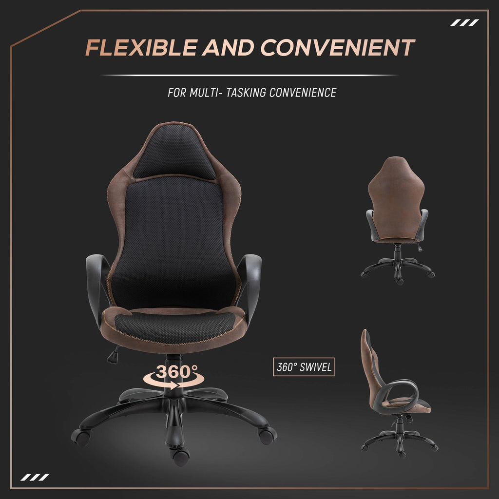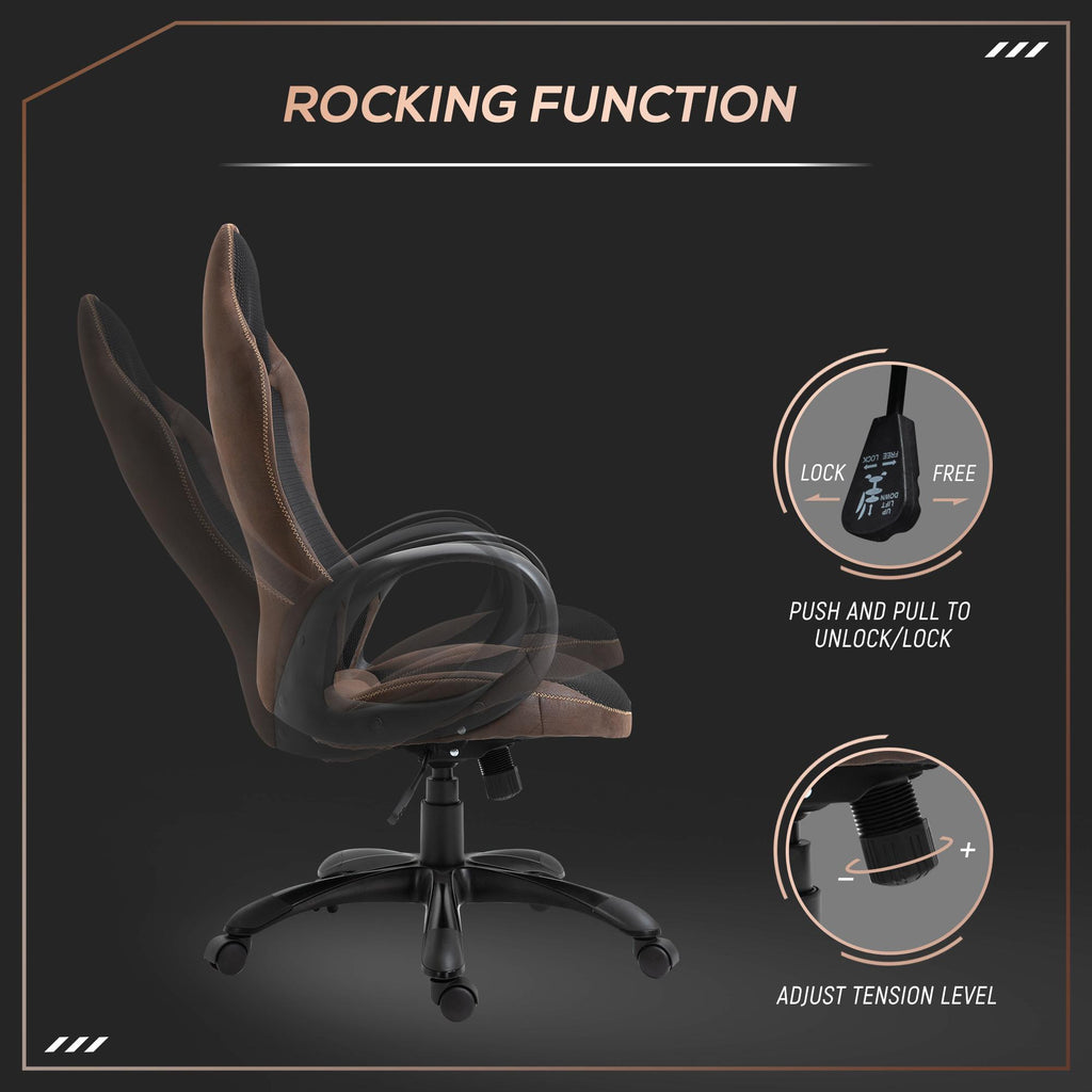 Sedia da Gaming Girevole Reclinabile in Tessuto Marrone