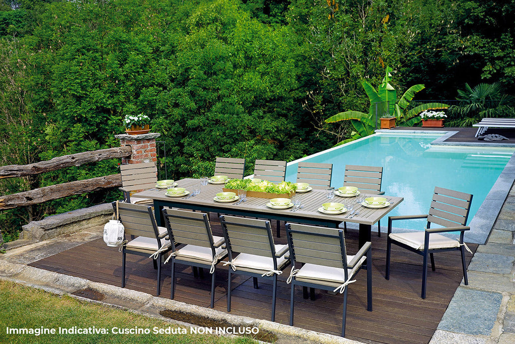 - Seduta e Schienale in resin wood color grigio con trattamento impermeabile