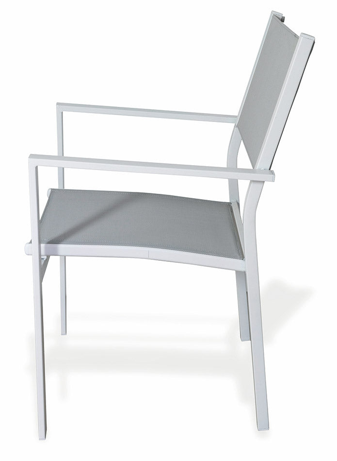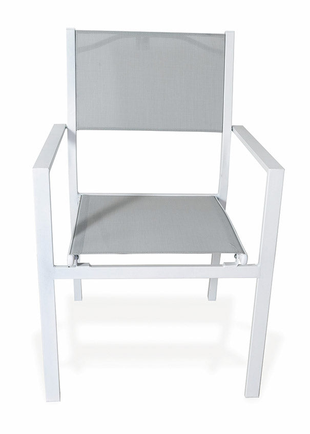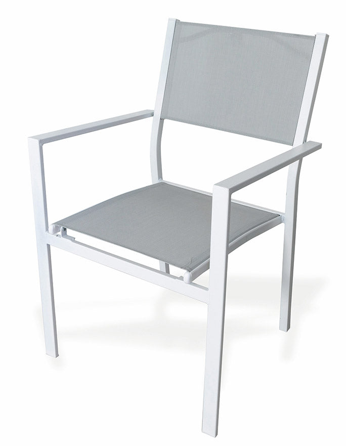 Sedia da Giardino in Acciaio e Textilene con Braccioli Soriani Bianca e Grigia