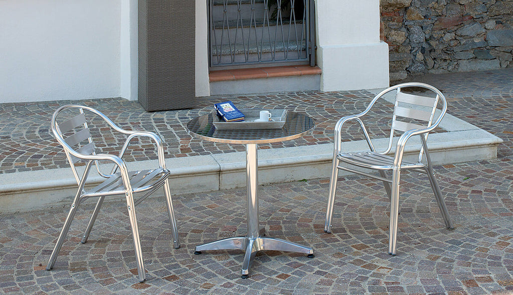 Sedia da Giardino in Alluminio doppio tubo con listelli. Impilabile.