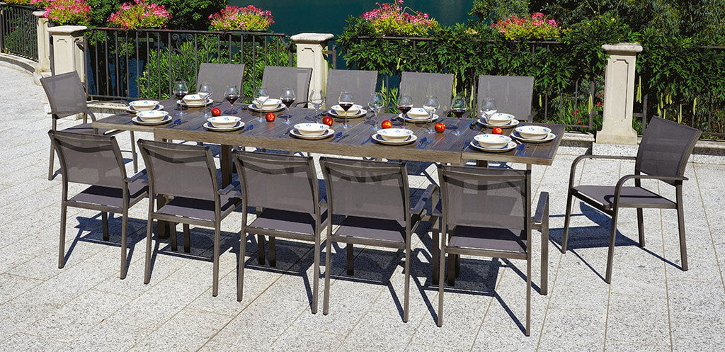 Sedia da Giardino in Alluminio Effetto legno e Textilene Vorghini Crans-Montana Grigio