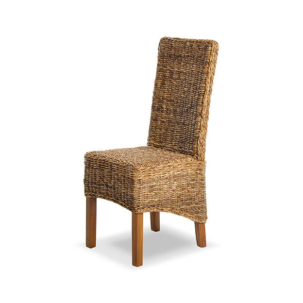 Sedia rivestita in fibra naturale di banano, struttura in legno di Mogano,misura cm. 44 X 45 X h101 altezza seduta cm.48