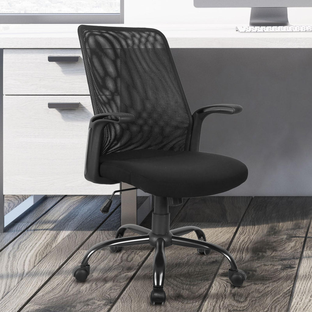Sedia Girevole da Ufficio in Tessuto a Rete Traspirante Nero