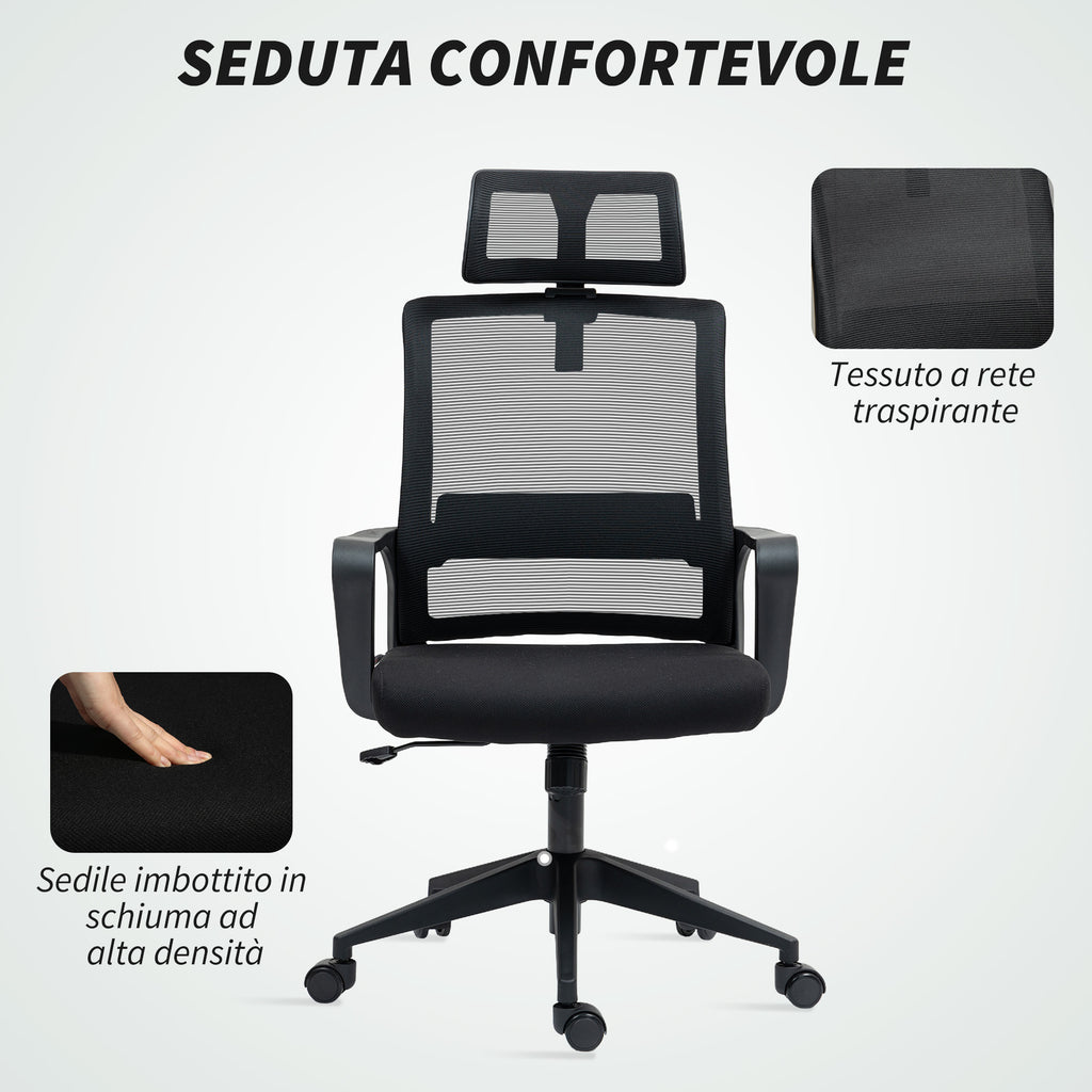 Sedia da Ufficio Ergonomica 60x64Px102-112H cm con Poggiatesta e Altezza Regolabili Nero