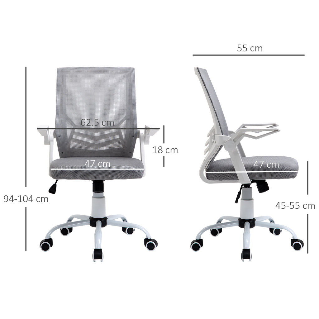 Sedia da Ufficio Ergonomica con Supporto Lombare 62,5x55x94-104 cm in Tessuto a Rete Grigio